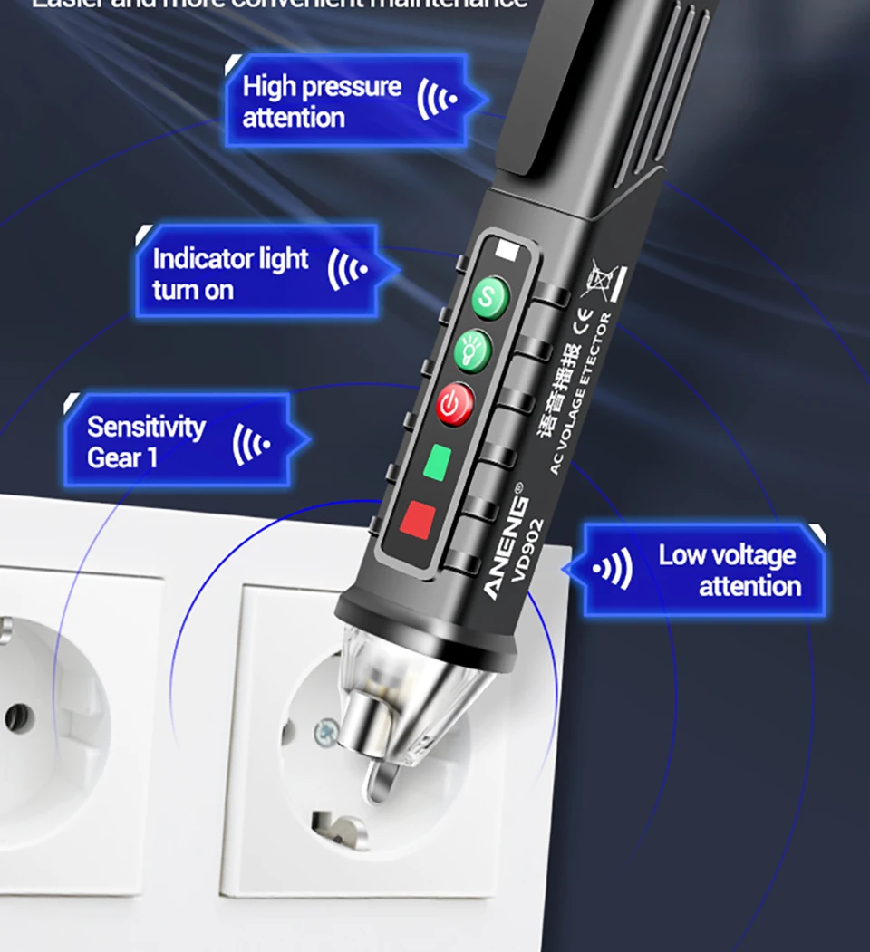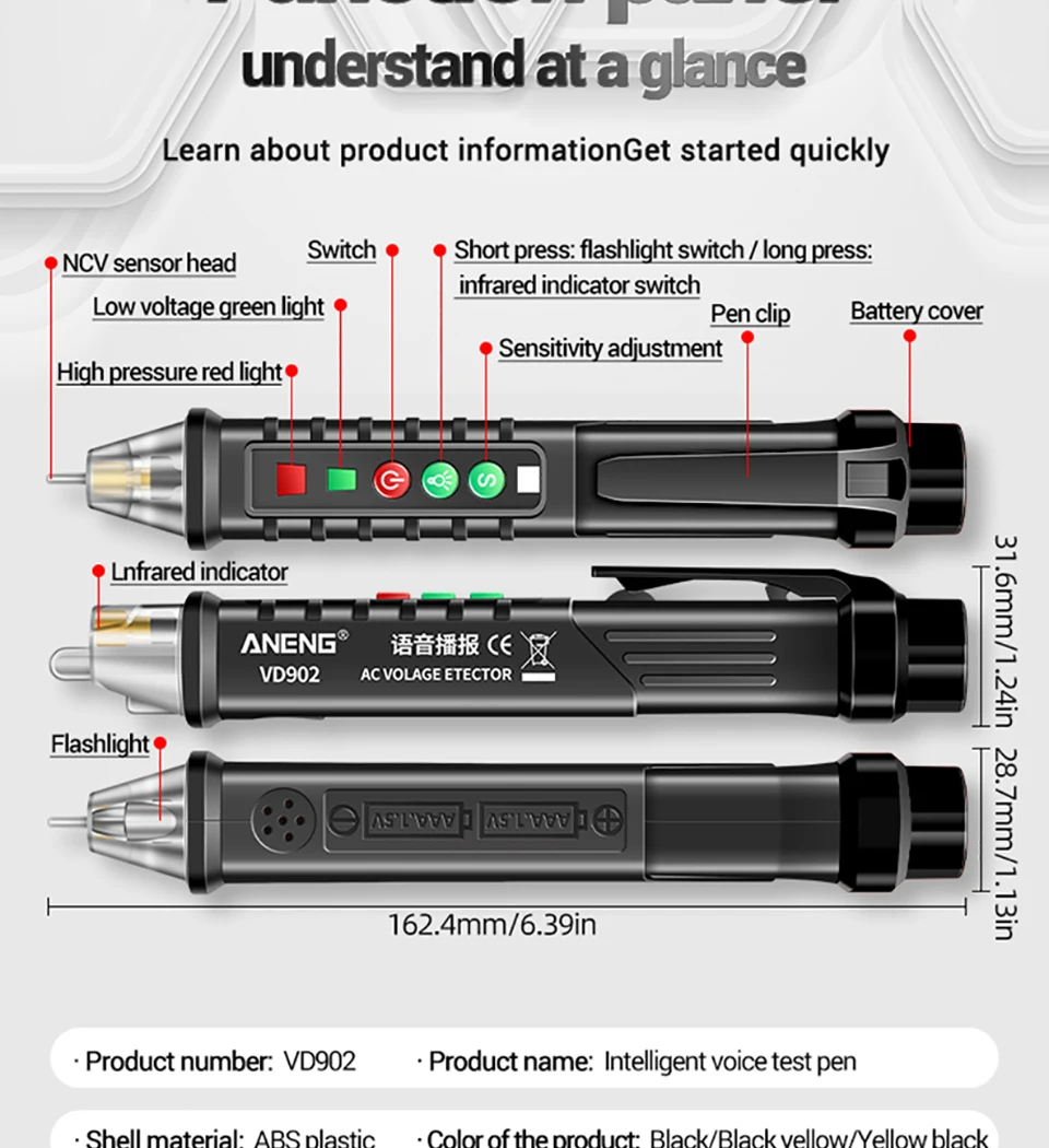 A NENG VD902 AC Voltage Detectors Smart Non-Contact Tester Pen Meter 12-1000V Electric Sensor Test Pencil Infrared Laser