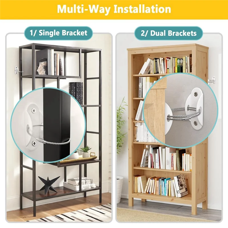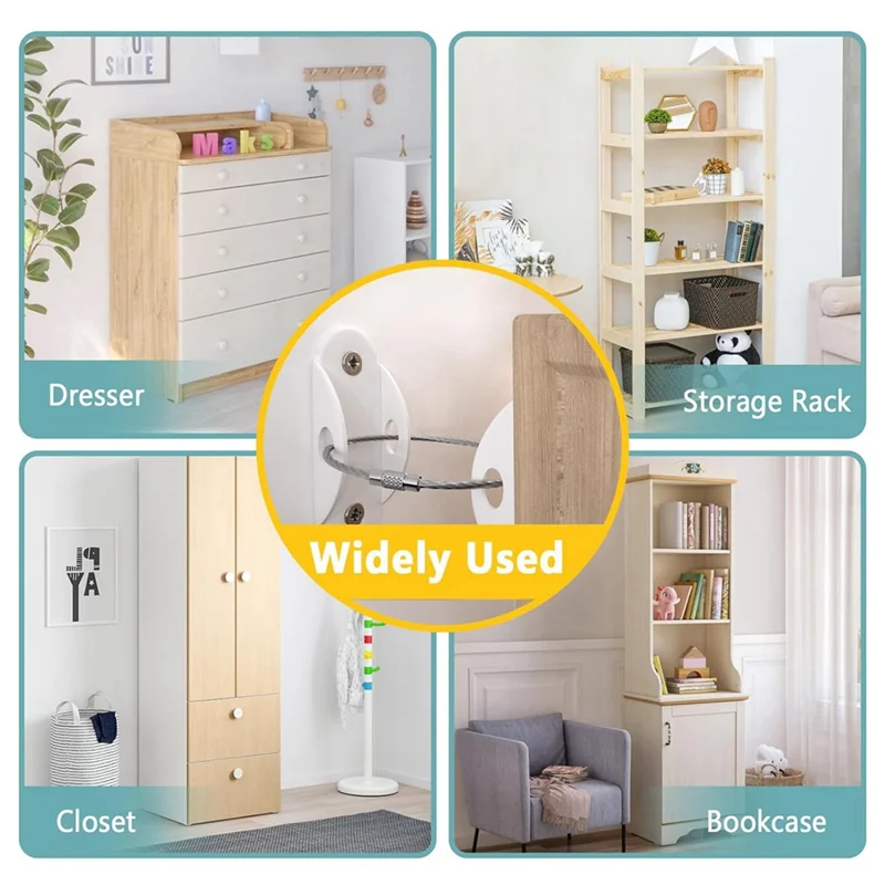 VERSATILE-USED ANTI TIP KIT: Our child proof anchor set come with all the necessary hardware, including brackets, steel wire stra-USED ANTI TIP KIT: Our child proof anchor set come with all the necessary hardware, including brackets, steel wire straps, screws and expansion nails. They are suitable for a wide range of furniture types, such as bookshelves, bookcases, dressers, drawers, cabinets, wardrobe, and any baby furniture. Rest assured that all the heavy and tall furniture in your home will be tightly anchored, eliminating the risk of furniture tipping-over.