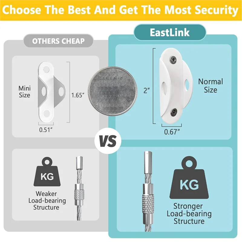 PREMIUM ANTI-TIP STRAPS: Crafted from high-quality stainless steel, these furniture wall anchors have more exceptional durability and corrosion resistance compared to other plastic or iron anchors. The anti tip furniture anchor feature high impact resistance, strong flame-retardance, and excellent resistance to aging and cracking. By installing 2 sets on each piece of furniture, they can easily withstand a load of up to 400 lbs, providing the most reliable babyproofing safeguards.