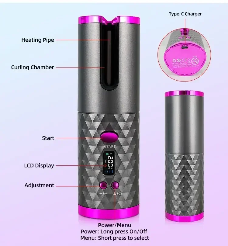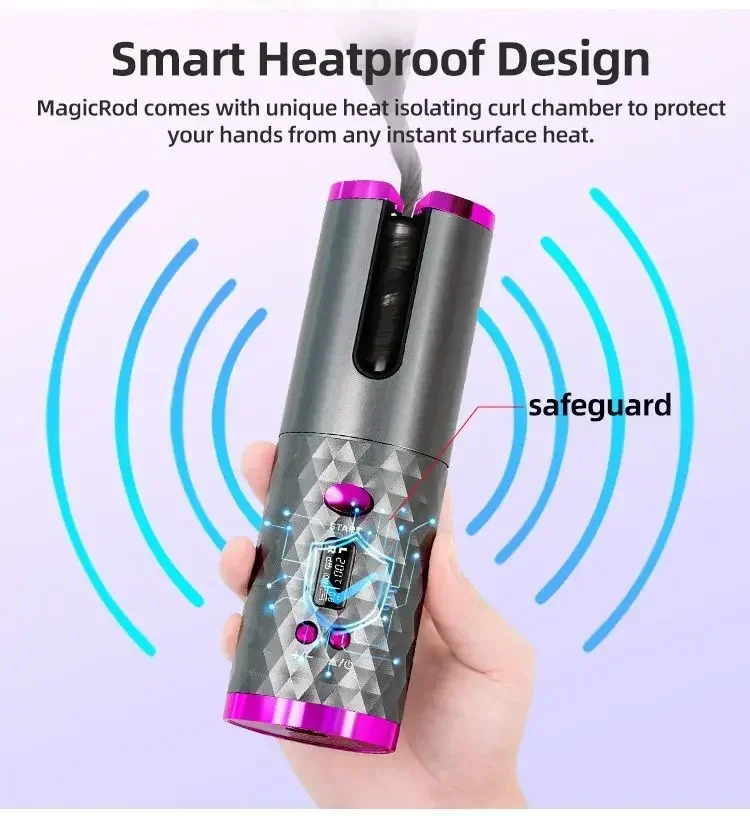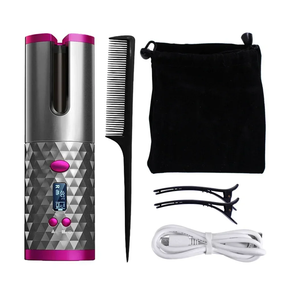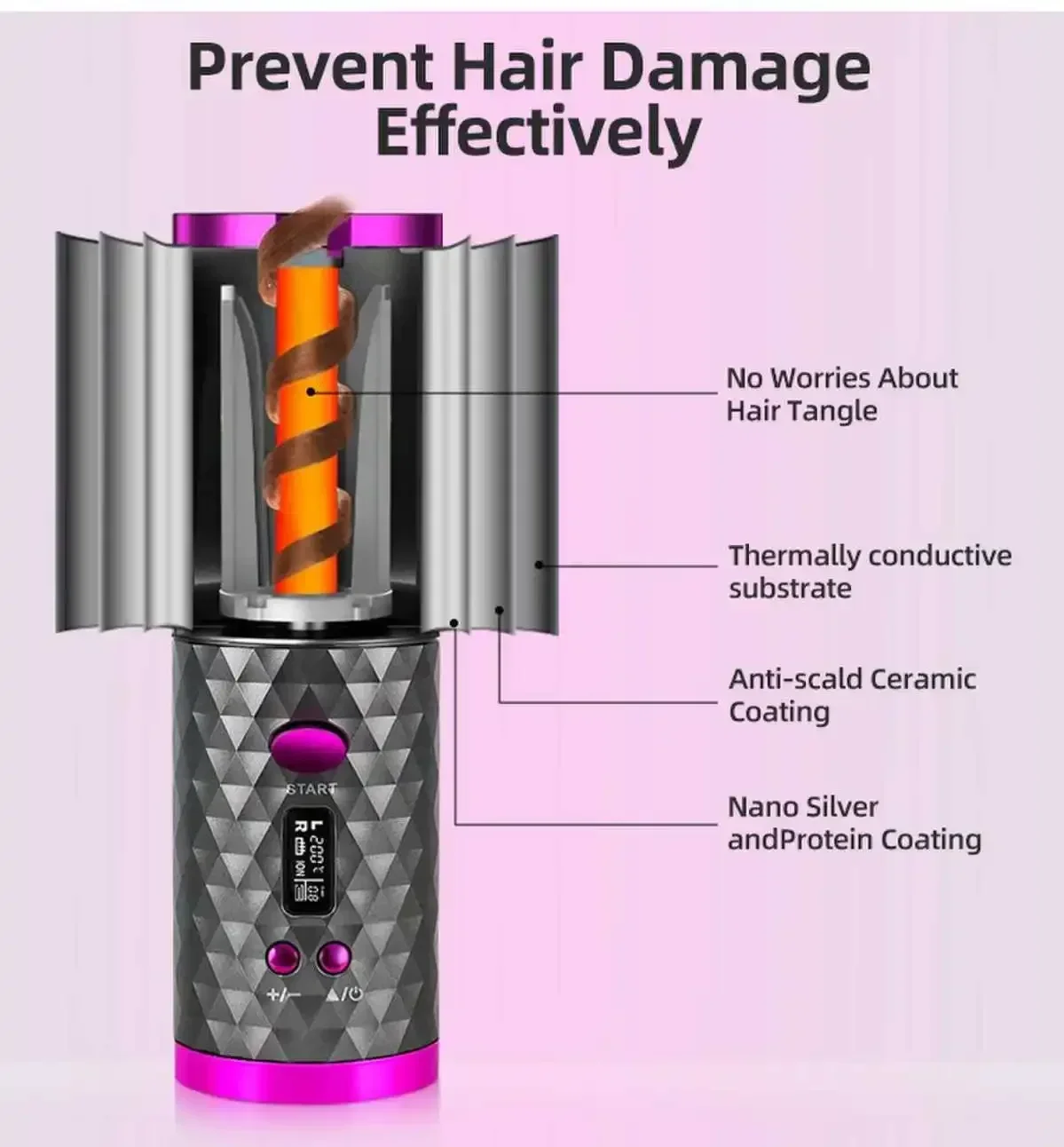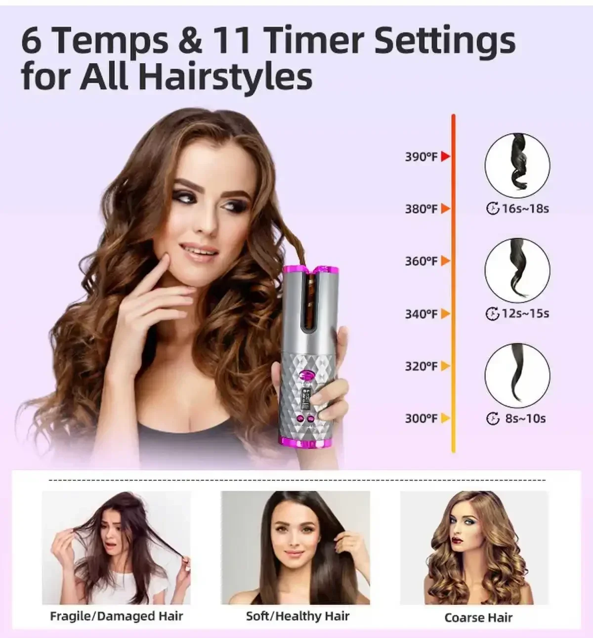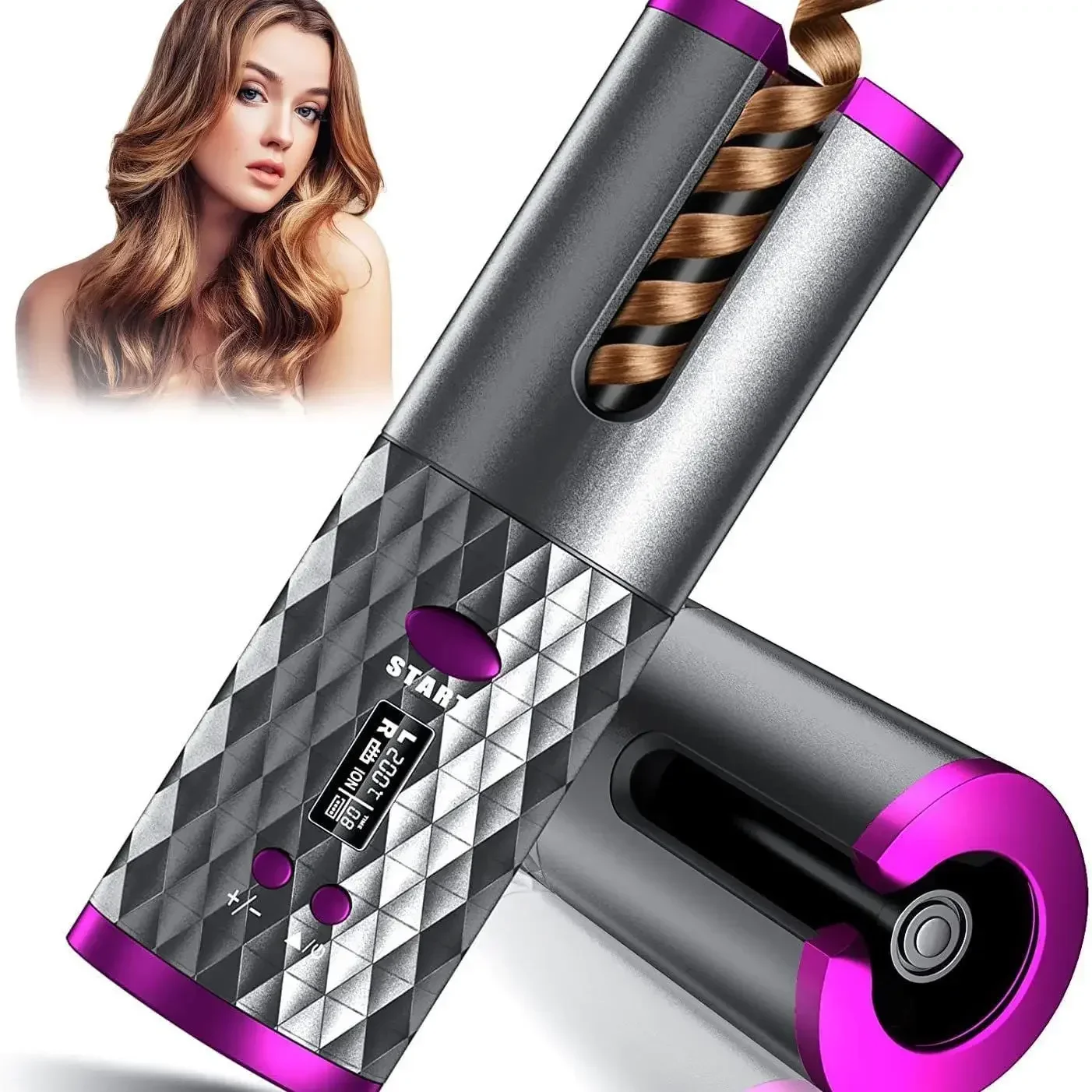 AONEZ Automatic Rotating Cordless Curling Iron-USB-C Rechargeable Adjustable Temperature Time Quick Heating and Easy Modeling