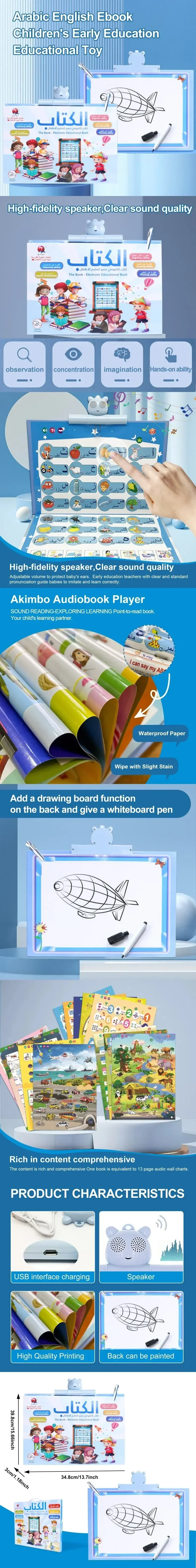 Arabic English Ebook Point Reading USB Charging Waterproof Paper Sound Hanging Book Children’s Early Education Educational Toy