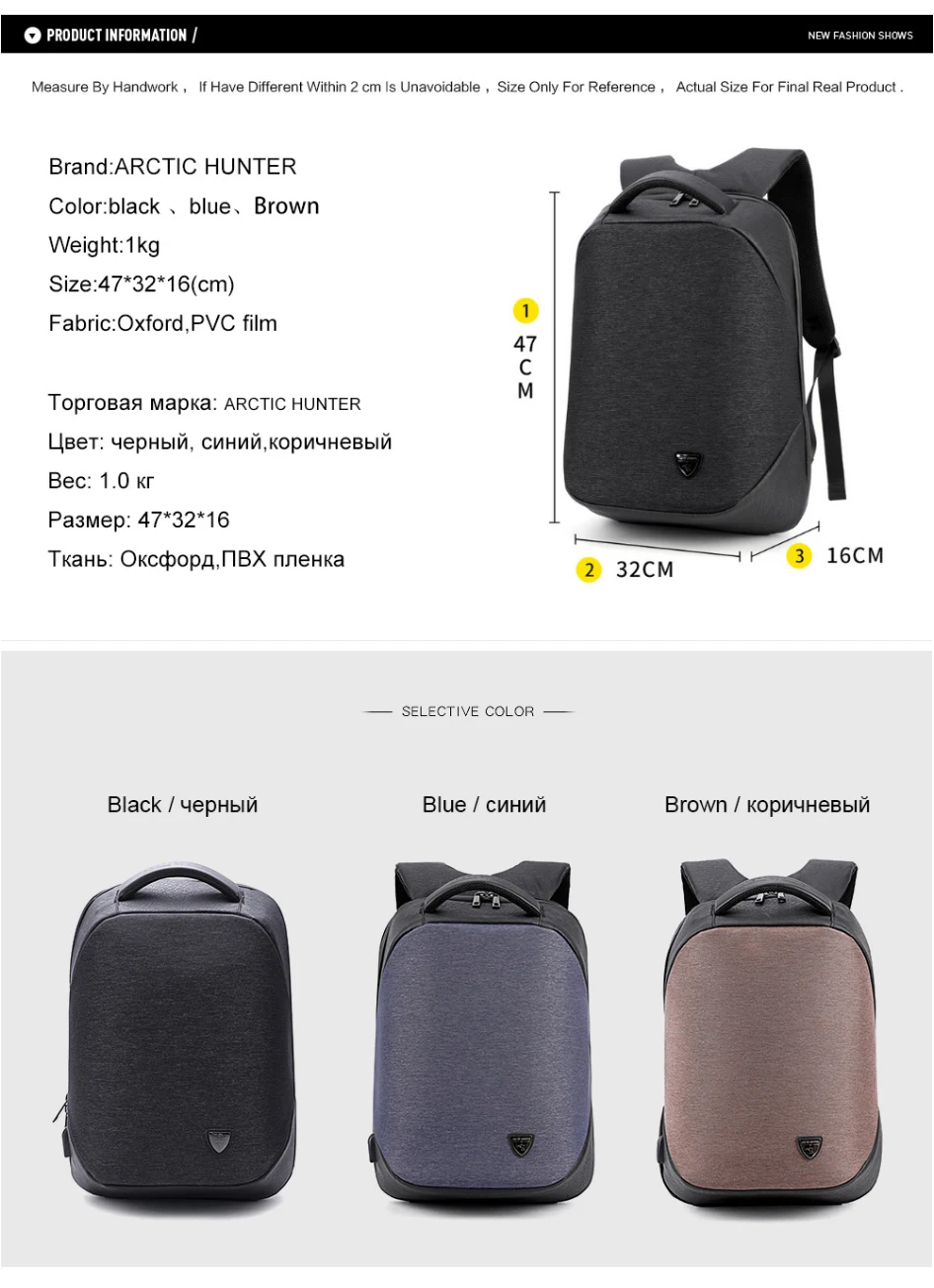 ARCTIC HUNTER Anti-theft Men USB Charging Backpack Headphone plug 15.6″ Laptop Backpack waterproof Business Large Travel bag