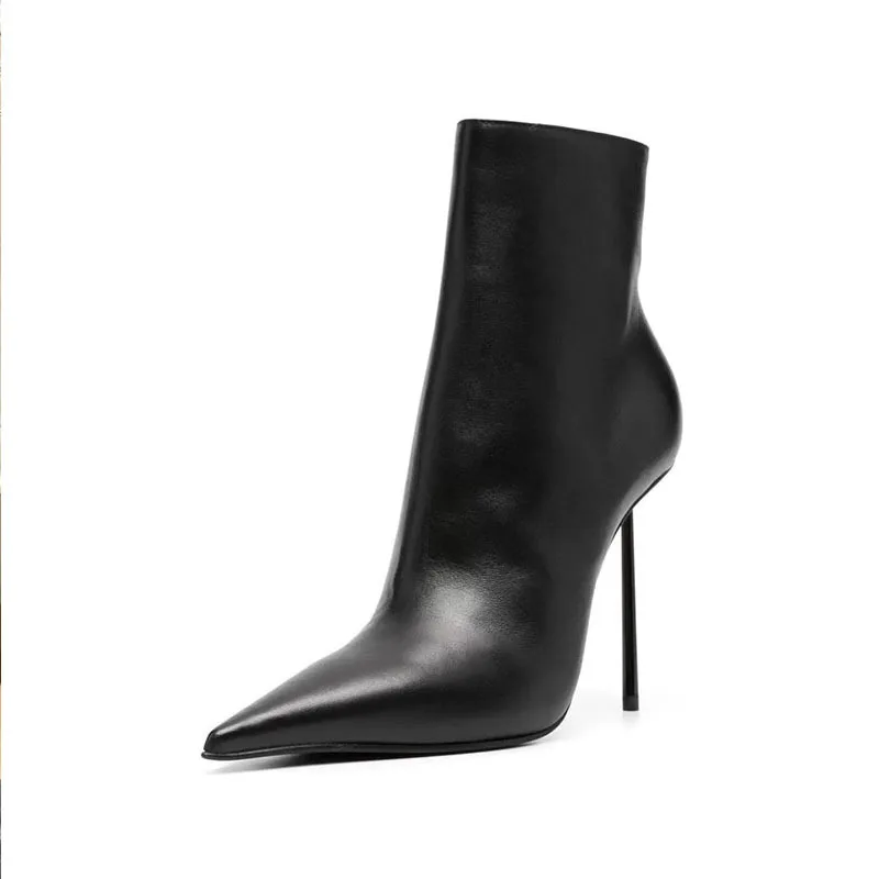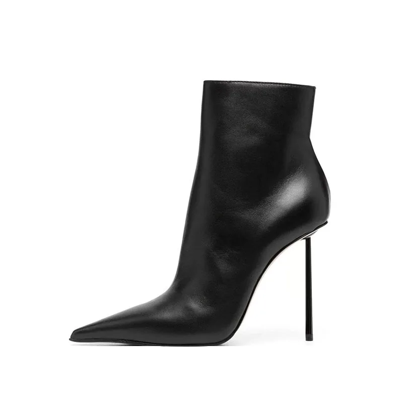 Arden Furtado 2024 Autumn PU leather Short boots pointy Super high heel side zipper Modern boots Large size Women’s Boots