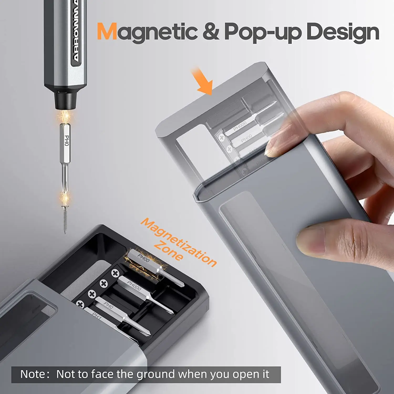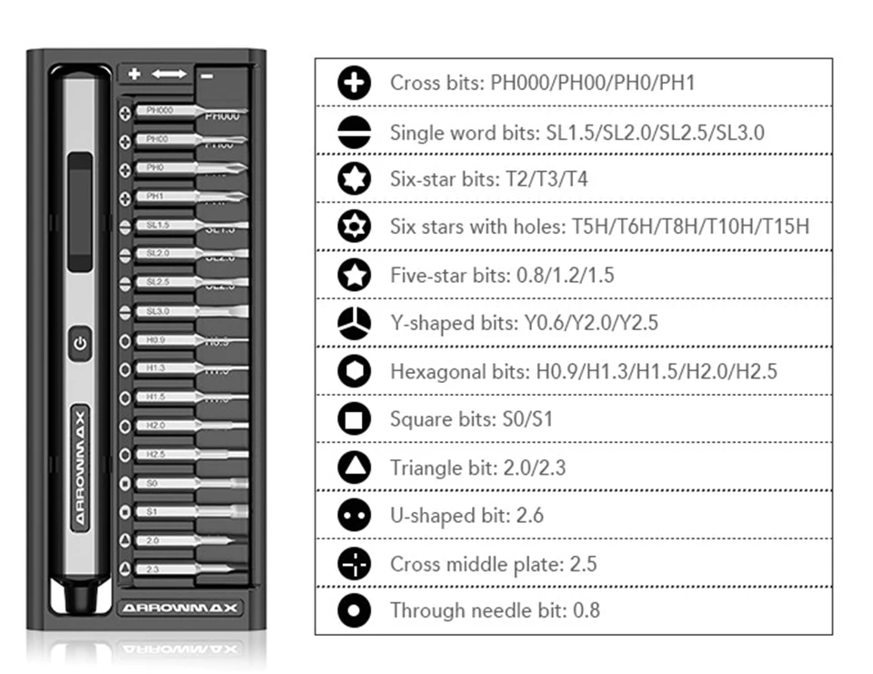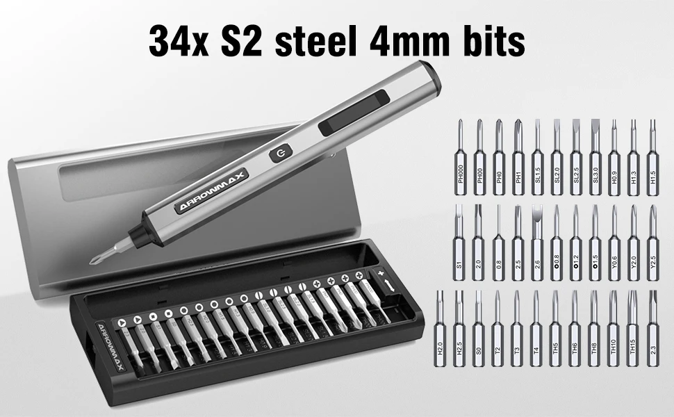 The SES PRO is included with 34 different magnetised tips. The tips are of industrial standards, adopting S2 alloy with hardness of HRC 60.