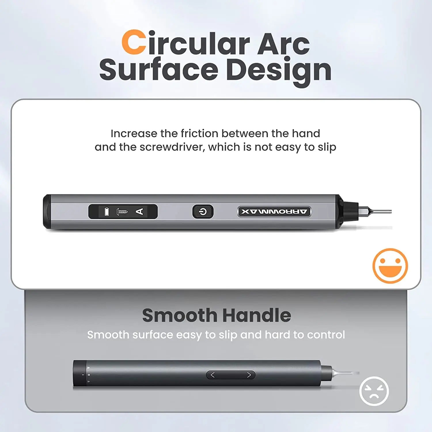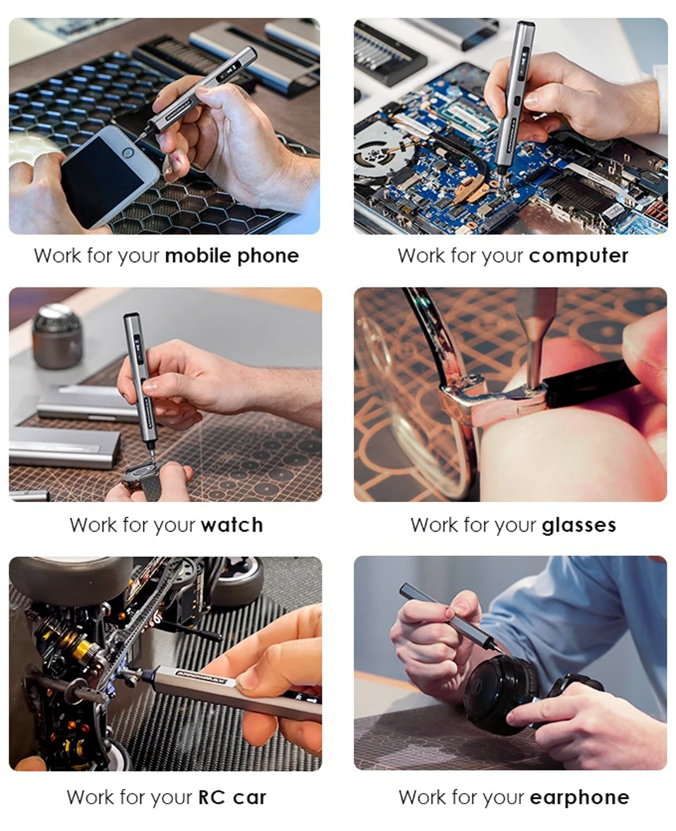 The shape of the SES PRO body is specifically designed to provide exceptional grip when in use. The rectangular fillet shape is proven to have great stability when not in use, or resting on non-slip surfaces. The pen-sized screwdriver is ultra portable and allows you to bring it to anywhere and everywhere in your pocket.