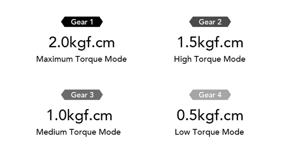 Each gear has its own torque option, which changes the direction according to hand swing induction. The torque margin of each gear is: