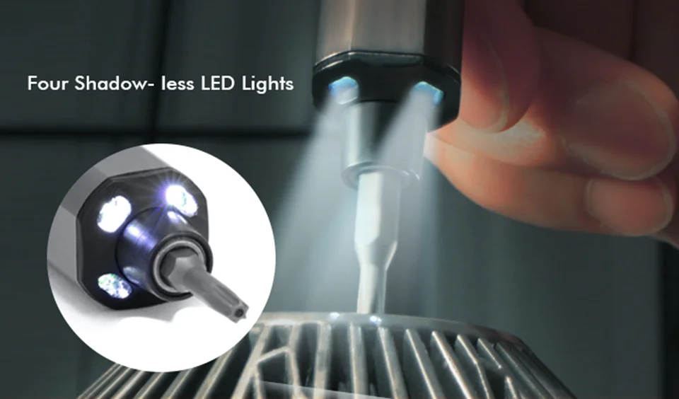 The SES PRO is equipped with four shadow-less LED lights on the head of unit. We have implemented the same LED technology that surgeons use to produce a shadow-less light, so you will never miss anything!