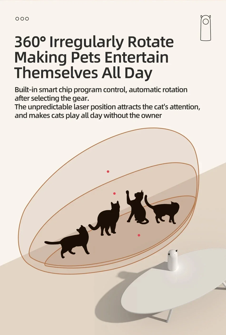 • Interactive Smart Teasing Pet LED Laser :The automatic cat toy features an interactive smart teasing pet LED laser that keeps your cat engaged and entertained for hours.