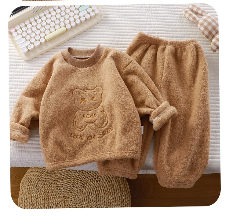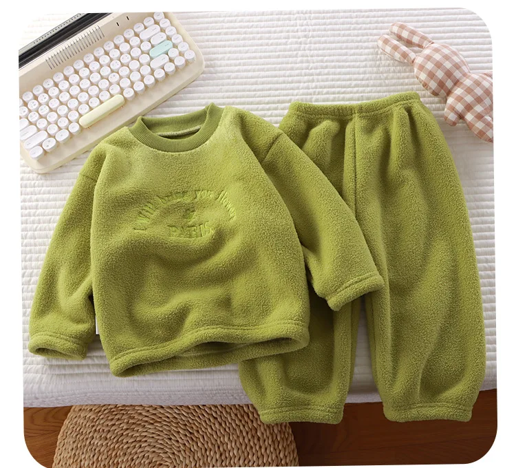 Autumn Winter Children Girls 2PCS Pajamas Clothes Set Fleece Thicken Warm Smling Sweatshirt Suit Soft Elastic Waist Pant Outfits