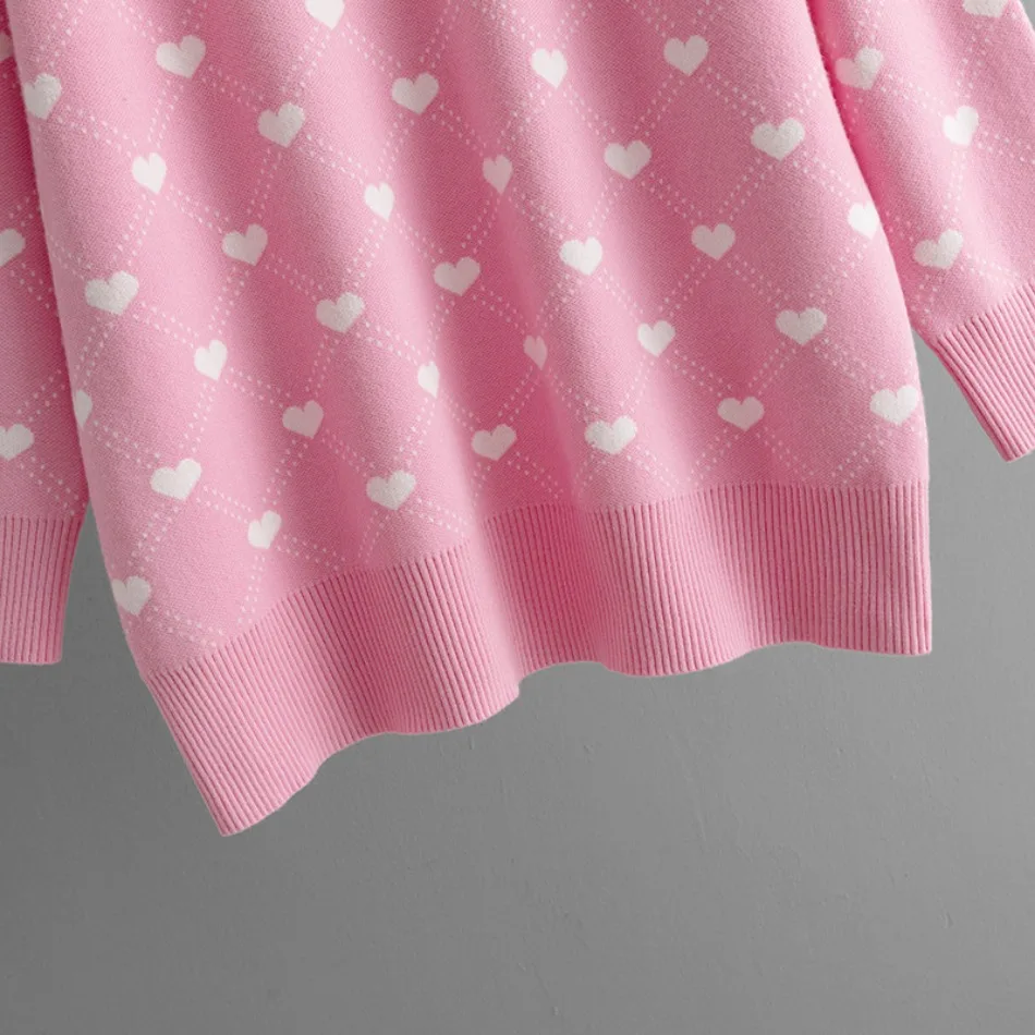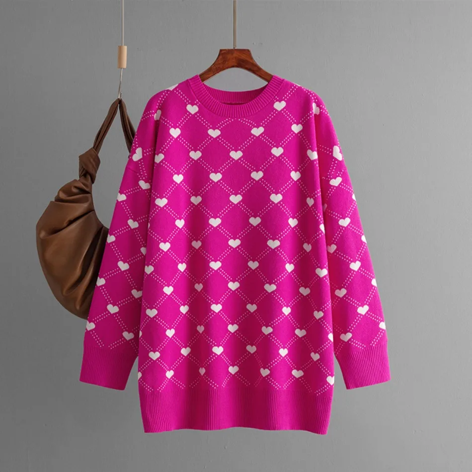 Autumn Winter Women’s Pullovers Heart Print O-Neck Basic Vintage Casual Oversized Jumper Thick Warm Knitted Sweaters for Women
