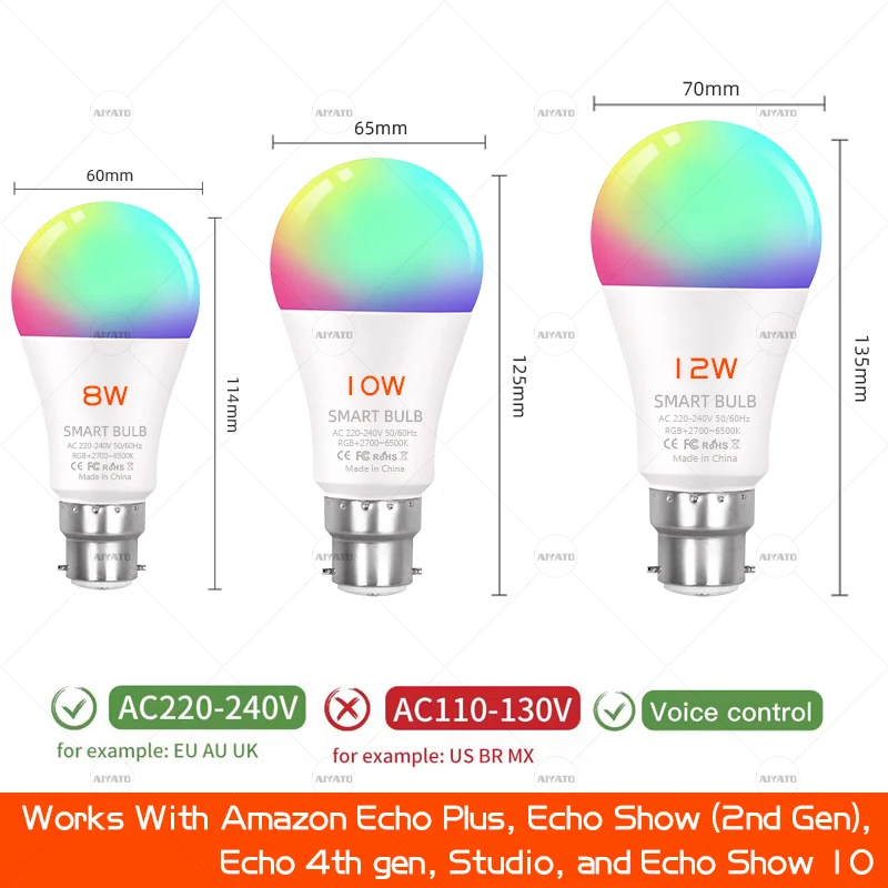 Zigbee smart bulbs can be connected directly to Amazon Echo Plus, Echo Show (2nd Gen), Echo 4th gen, Studio, and Echo Show 10. All other Alexa devices, like the Echo Dot, and Google home, require a SmartThings bridge. Not compatible with Homekit. Do not work with the regular dimmer.