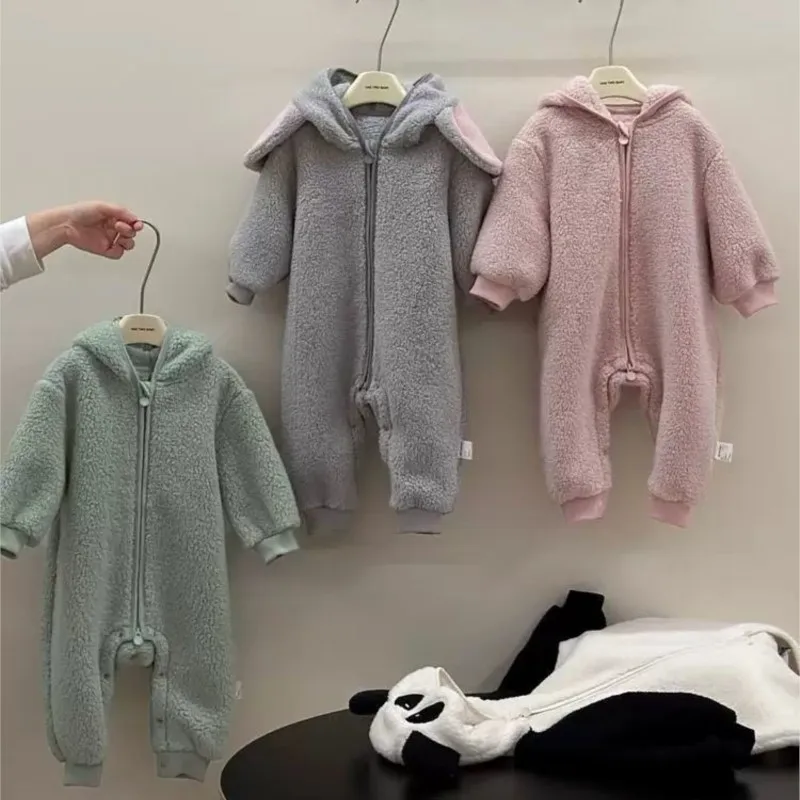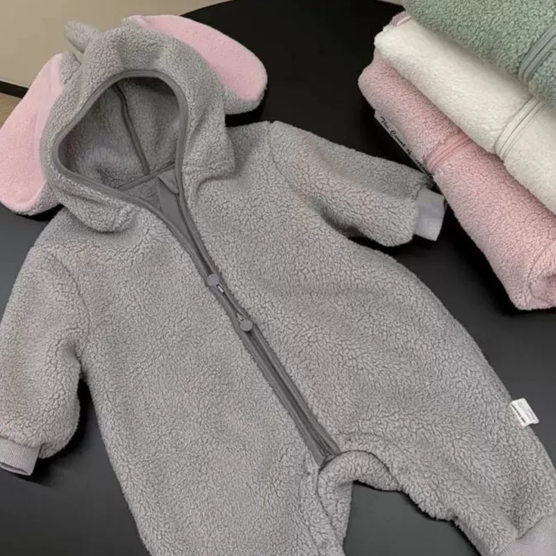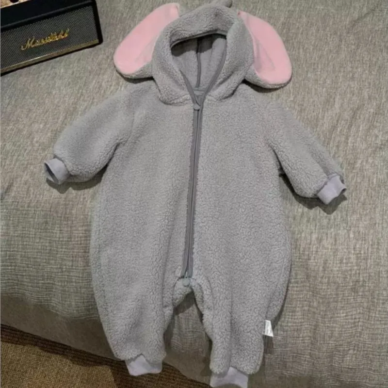 Baby Girl Boy Cotton Fleece Elephant Kigurumi Hooded Pajamas Infant Toddler Fluffy Warm Sleepwear Jumpsuit Winter Clothes 0-2Y