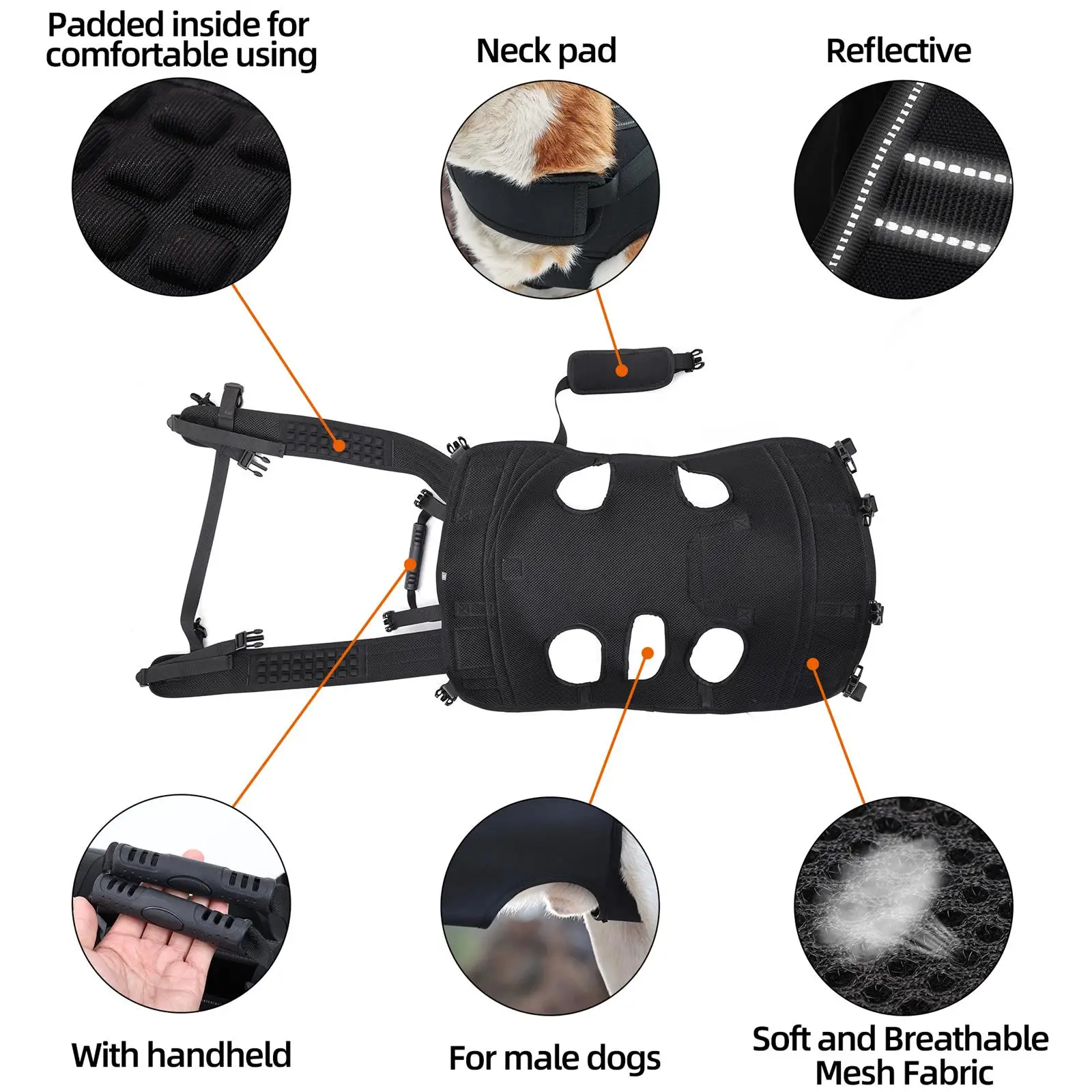 Made of polyester fabric, it is breathable and comfortable to wrap. It is lightweight and can be held in front of you to check the dog’s condition at any time. It can also be used as a backpack. It has a good sense of stability and is not easy to deform. Widen and thickened shoulder straps and streamlined design can make your shoulders more comfortable when under pressure. The foot opening design makes the pet more comfortable. It is small and light, and the comfortable handle can also be used with one hand. It is very suitable for family travel, camping, hiking, riding, or shopping. And can help older and injured dogs get back to health faster.