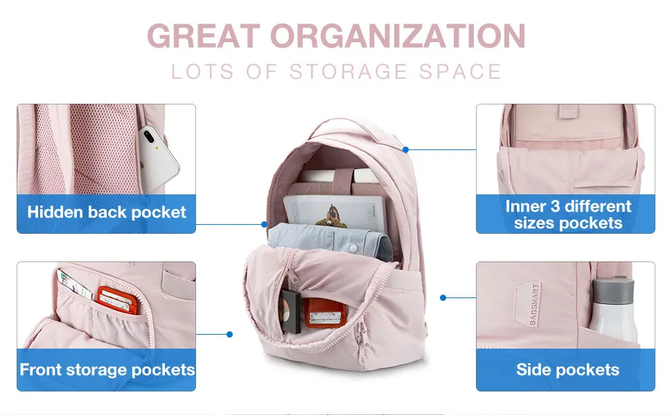 BAGSMART 13 inch Laptop Computer Backpacks Anti-theft Backpack for Women School College Notebook Waterproof Travel Bag