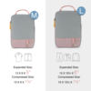 A true space saver – these compression travel cubes work just like a vacuum sealer. By adding extra zippers on the outside, it can zip upwards, helping to hold the garment down and minimize interior space. What a difference they can make. Help travelers “pack twice as much” luggage.