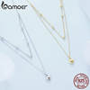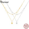 BAMOER 925 Sterling Silver Heart Pendant Necklace for Women Gold Double Layer Choker Female Fine Jewelry BSN168