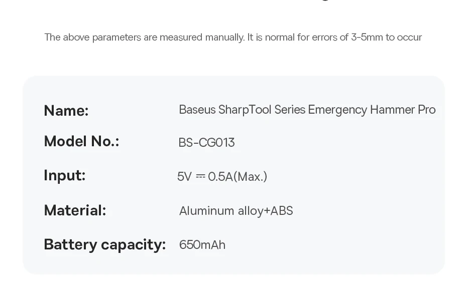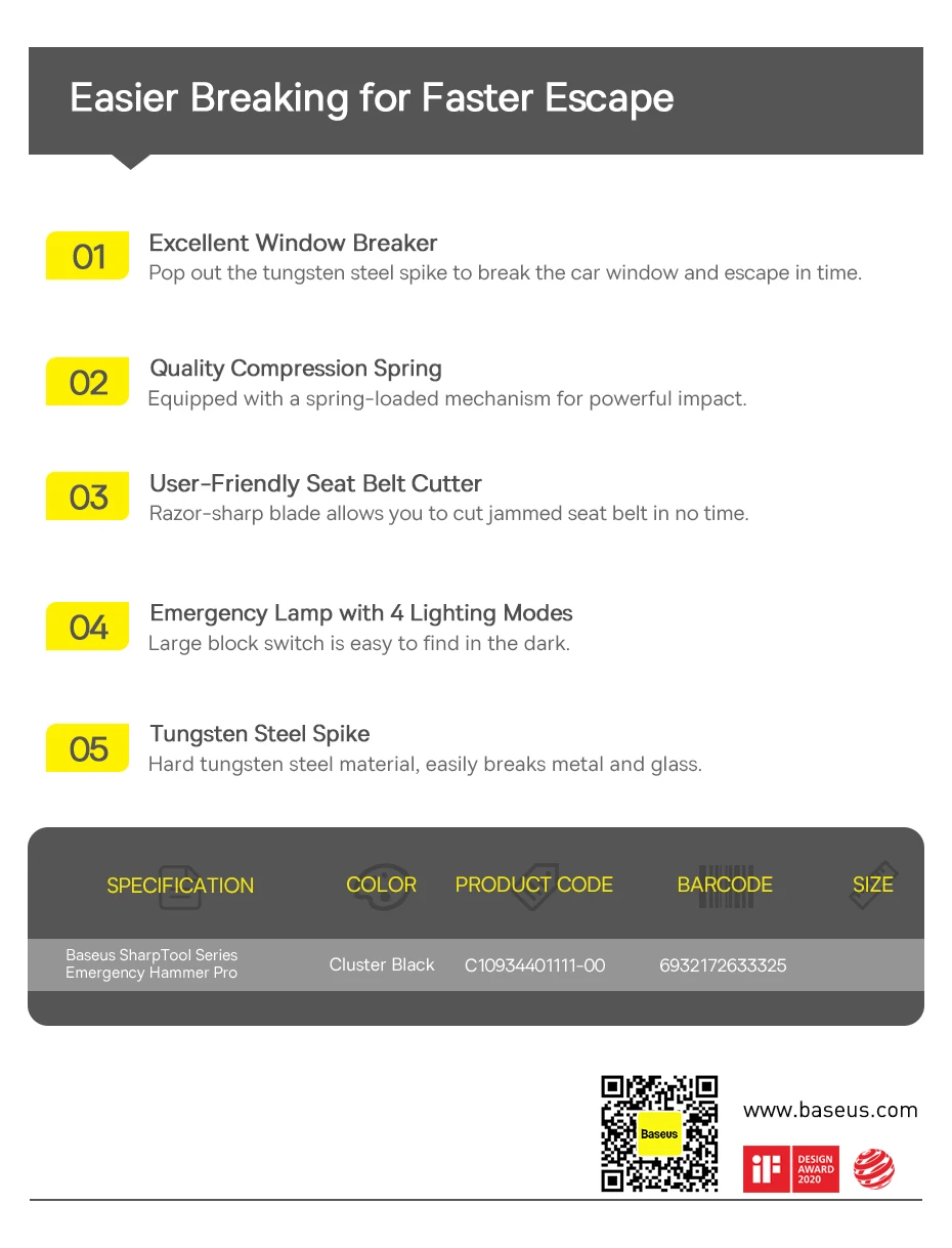 Name: Baseus SharpTool Series Emergency Hammer Pro