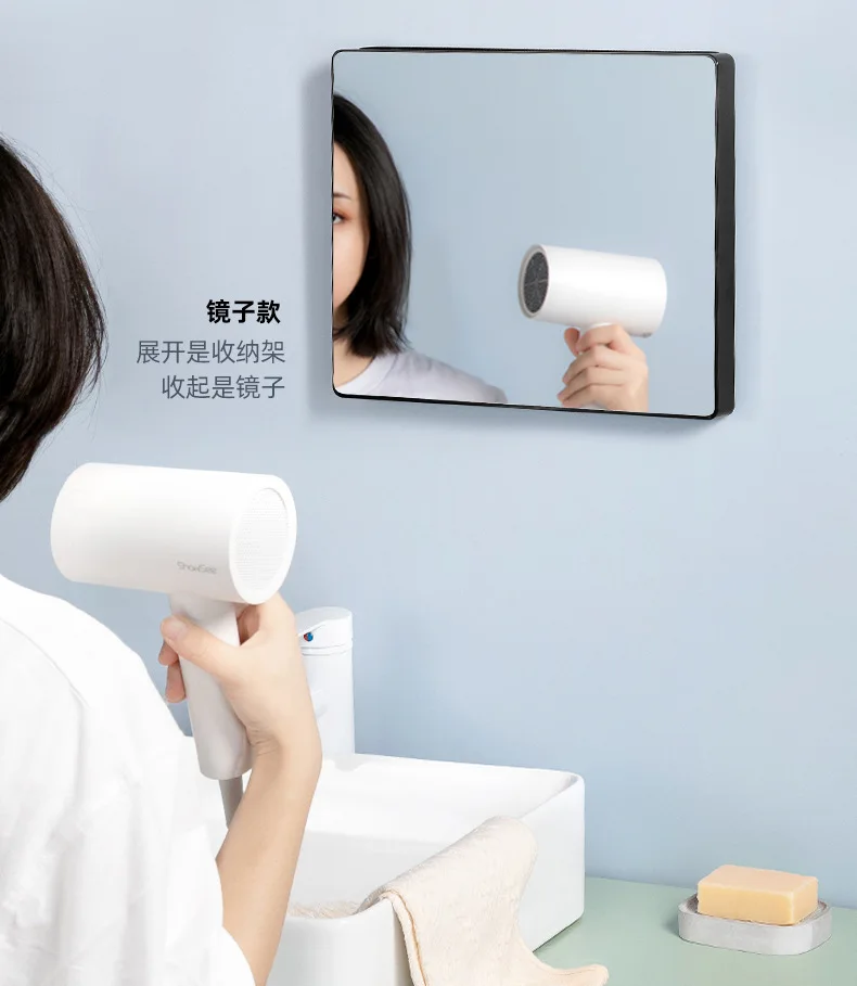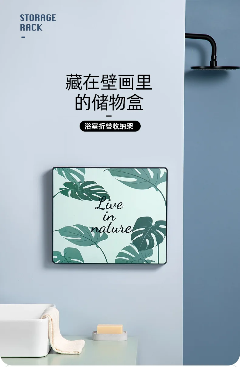 Bathroom Toilet Foldable Wall-mounted Storage Rack Storage Box Makeup Mirror Clothing Storage Box Storage Containers