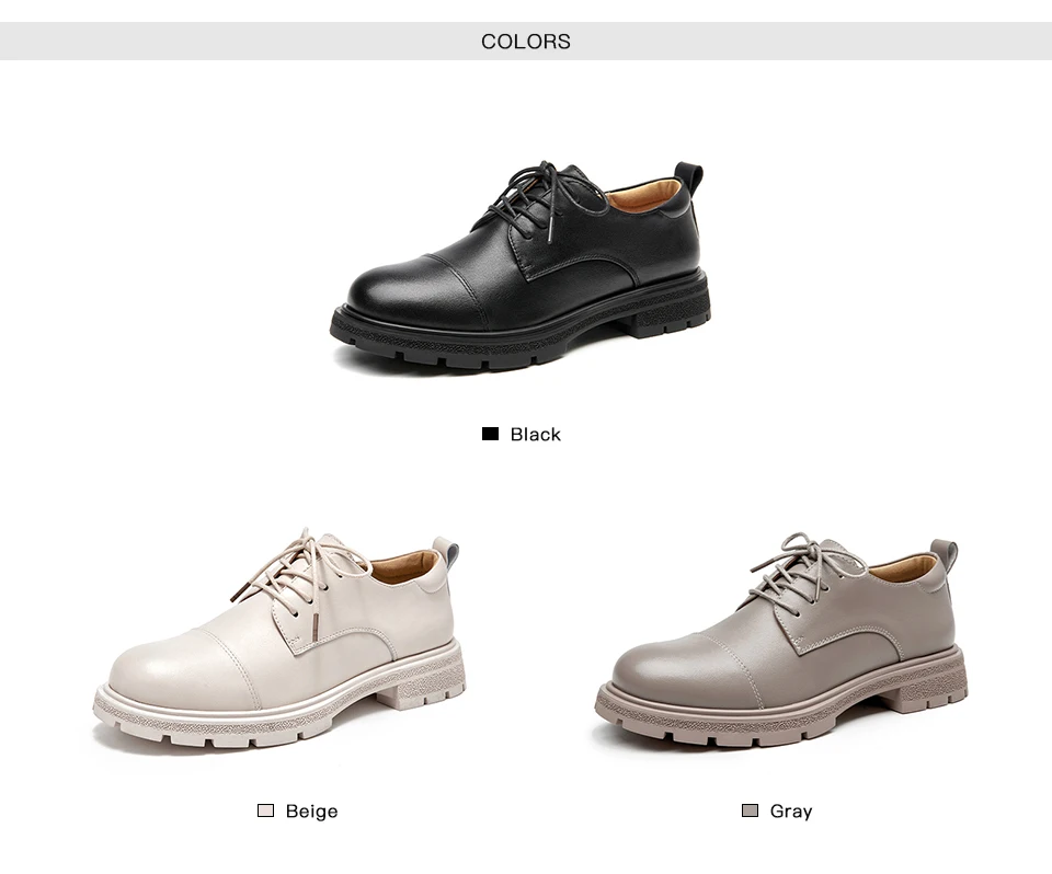 BEAUTODAY Derby Shoes Women Genuine Leather Flats Round Toe Lace Up Square Heel Female Casual Oxford Handmade 21529