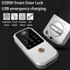 Fingerprint Door Lock Handle USB Rechargeable Anti Theft Smart Electric Biometric Keyless Security Entry with 2 Keys for Apartment Hotel Bedroom Home