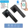 Fingerprint Door Lock Handle USB Rechargeable Anti Theft Smart Electric Biometric Keyless Security Entry with 2 Keys for Apartment Hotel Bedroom Home