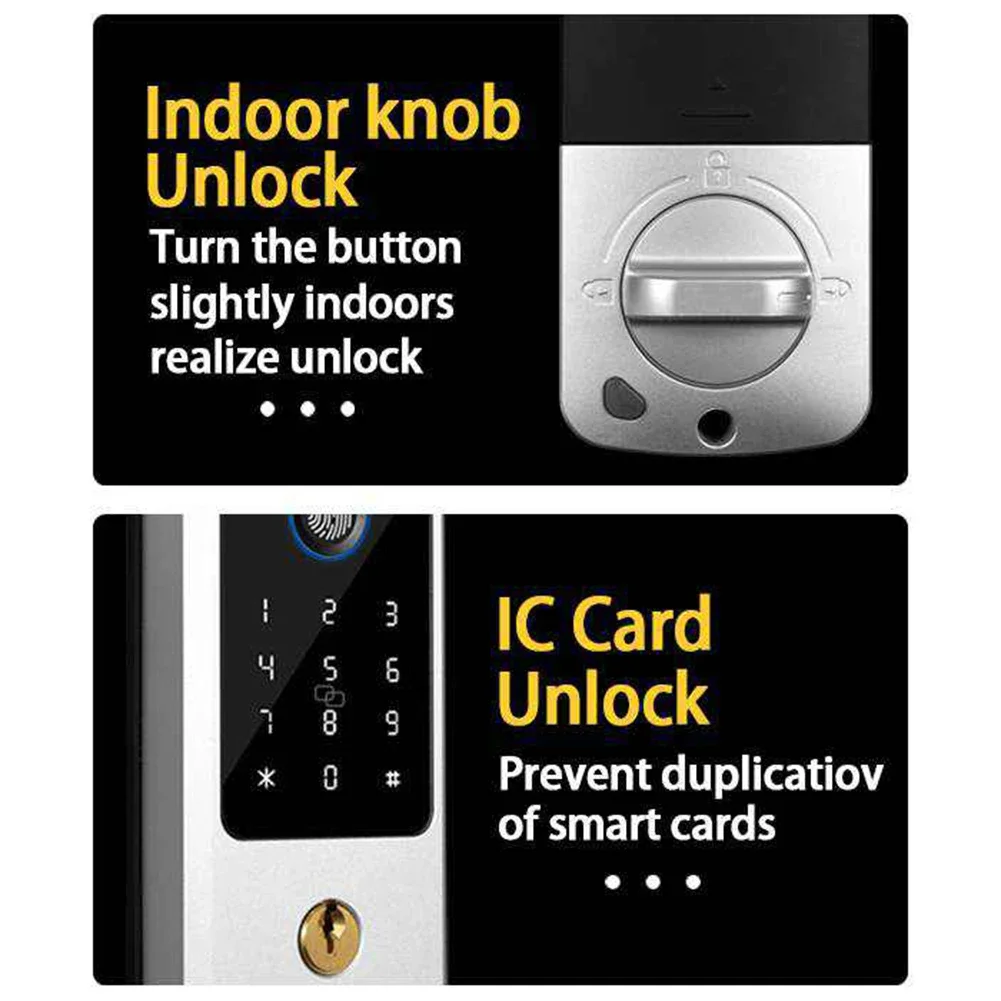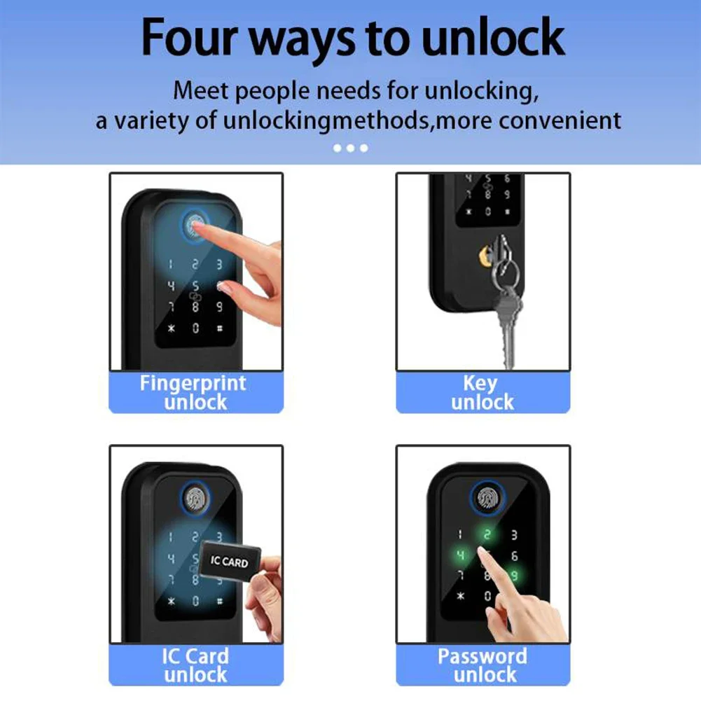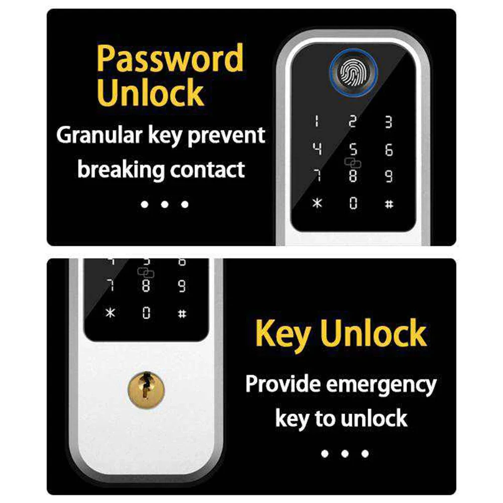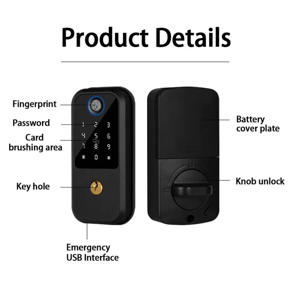 Feature: Material: Made of zinc alloy material, durable and sturdy to use. Safe and Reliable: Fingerprint recognition lock, convenient fingerprint settings,safe and secure. High Efficient: The lock can recognize 30 fingerprint and the recognition speed is 0.25s. Power Supply: The fingerprint door lock powered by 4pcs x AAA dry batteries(not included), and meanwhile with USB charge port for emergency. With 2 Keys: Each fingerprint lock is equipped with 2 mechanical keys, which will enable users to unlock in traditional method. Biometric lock: Using biometric fingerprint technology, the door can be unlocked by fingerprint in only 0.25s, which is safe and reliable. Large capacity: The smart lock can store 30 fingerprints and can be opened easily and conveniently. Wide range of uses: Made of high-quality zinc alloy, strong and durable, suitable for families, apartments, personal residences, hotels, etc. Specification: Note: