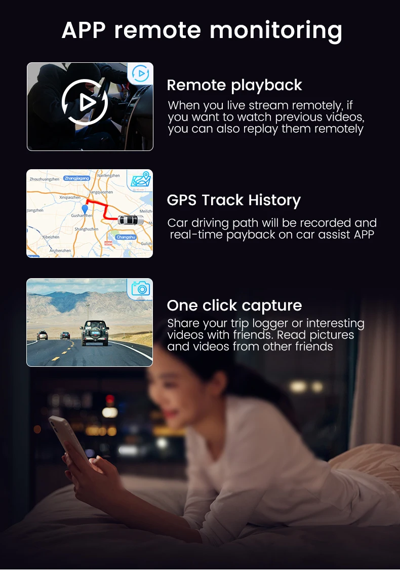 Track the location of your car, remotely capture what happened to your car from anywhere in the world via phone APP.