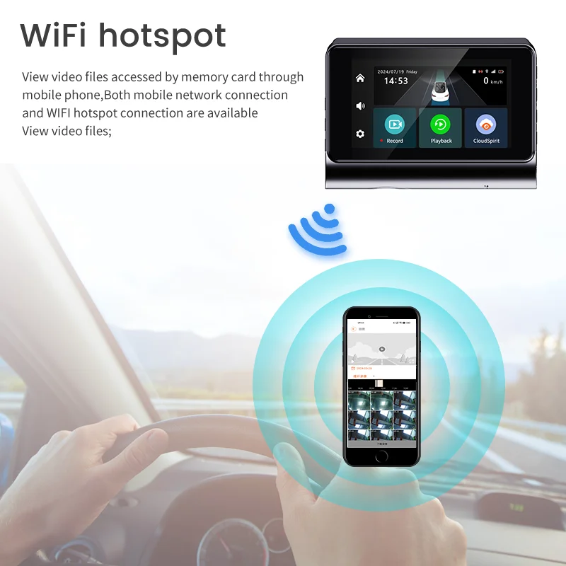 Simply install the CloudSpirit app on your phone, connect to the dash cam via 4G or Wi-Fi, and you can live stream video and track your car’s location anytime, anywhere.