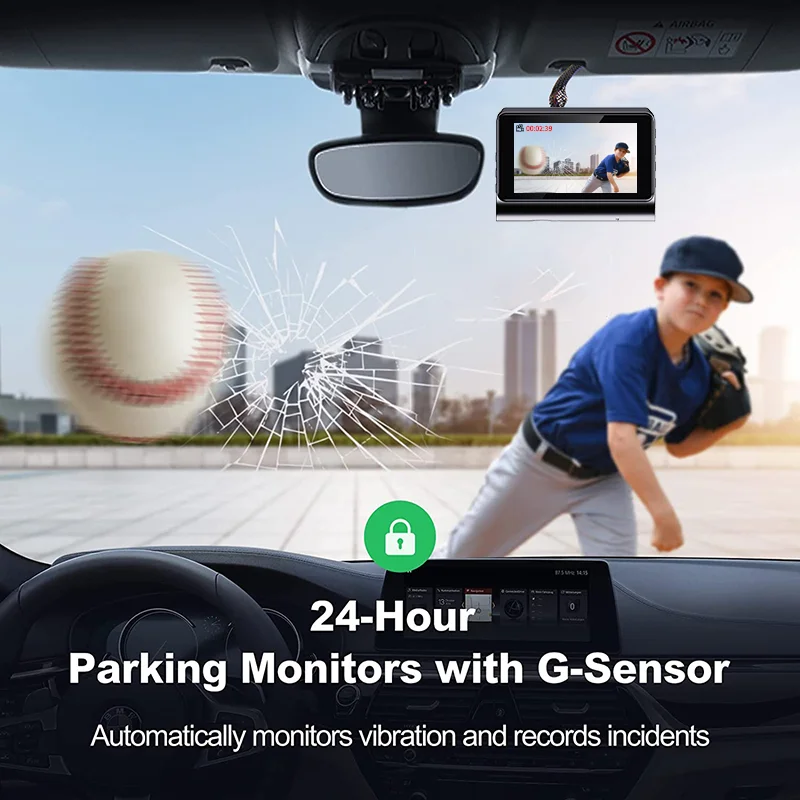 Impact Activated Parking Monitor: Our dash cam features a built-in G-sensor that automatically triggers recording when it detects a collision, providing crucial evidence in case of an accident.