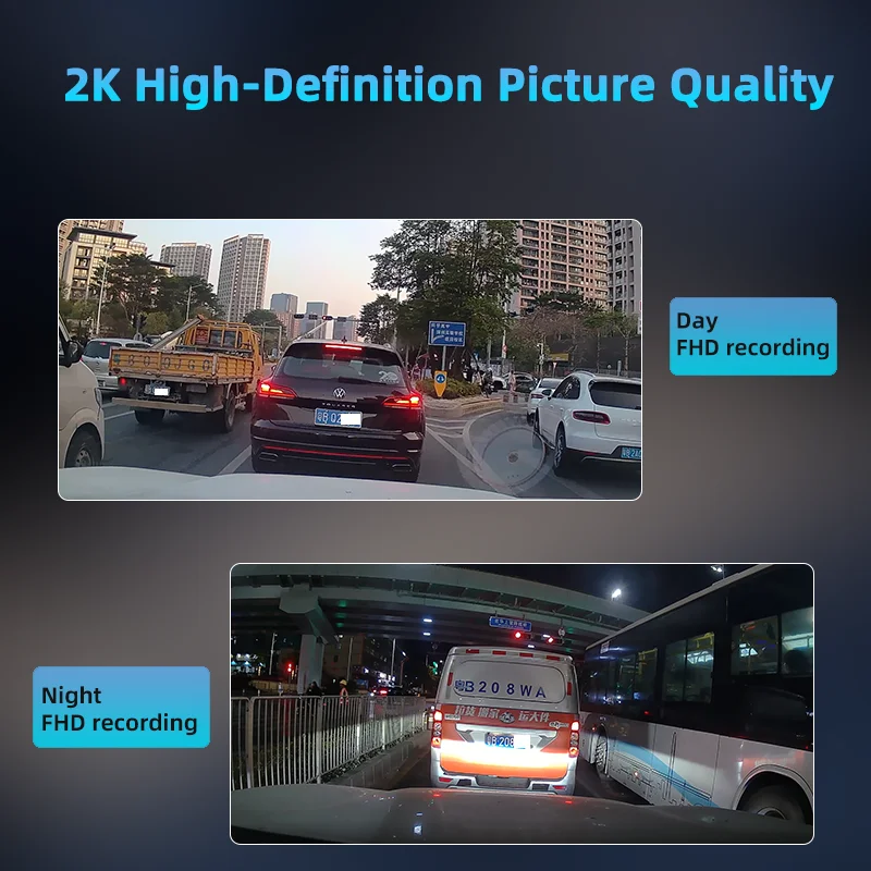 ✅ 2K Front & 720P Rear Cameras – High-resolution video with a 140° front and 130° rear wide-angle lens for full coverage.