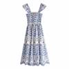 Blue Floral Embroidey Summer Beach Dress Women Casual Holiday Bohemian Dress Boho Sundress Maxi Long Vestidos Fashion Clothes