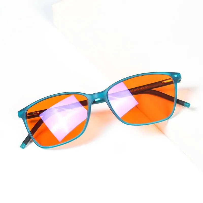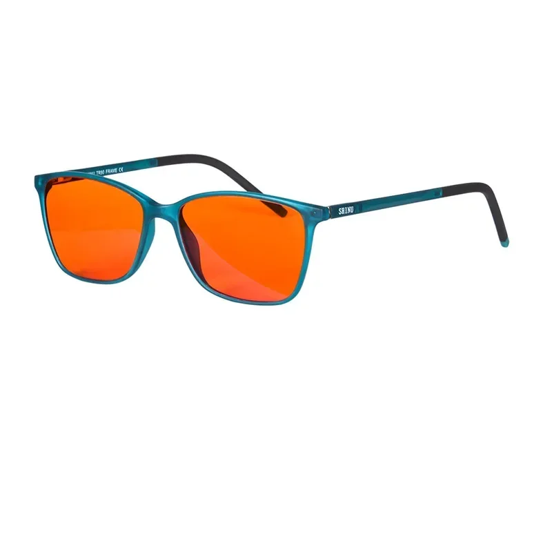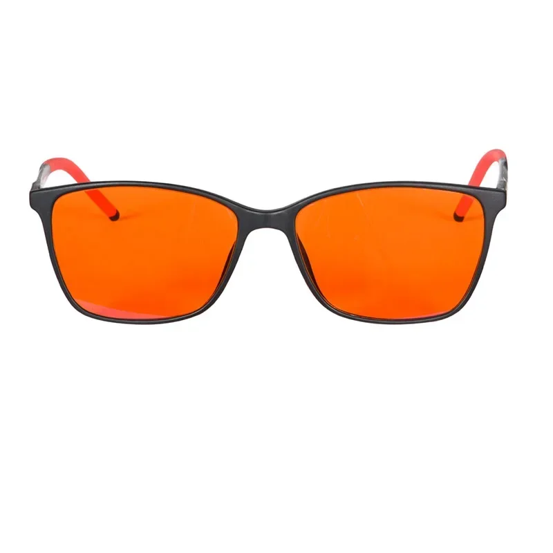 Orange lens can blocking 99% blue light. and not too dark like Red lens. so. better for long time working .