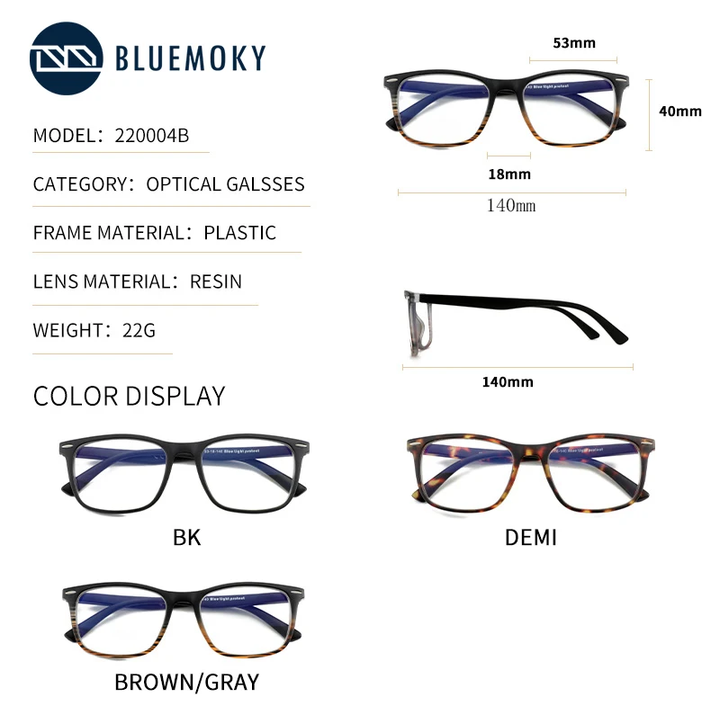 BLUEMOKY Vintage Men Prescription Eyewear Square Anti Blue Light Myopia Optical Glasses Progressive Eye Glasses