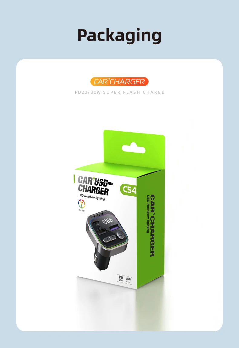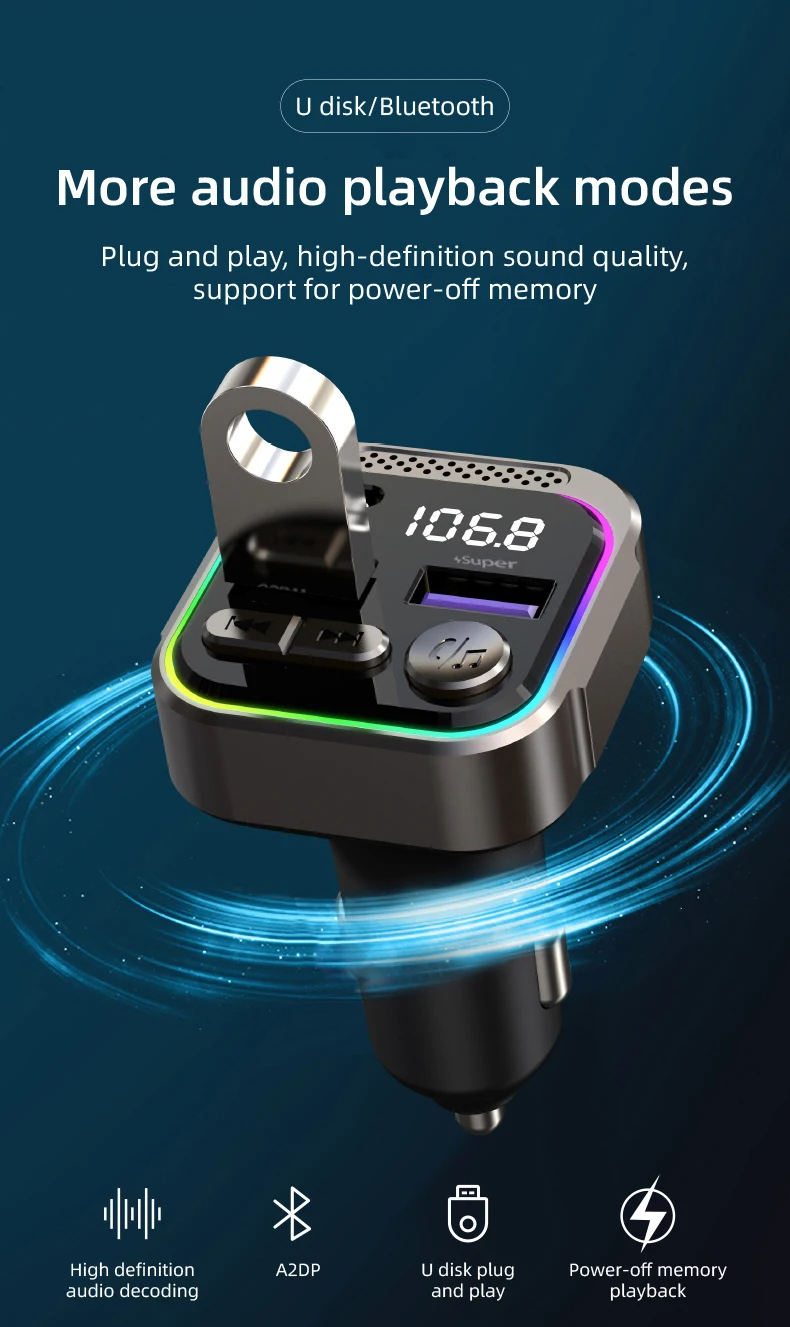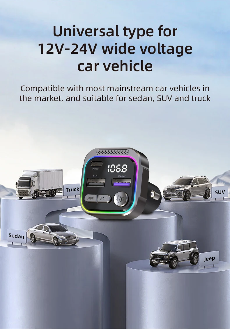 Bluetooth FM Transmitter Zinc Alloy PD30W Fast Charger Audio Receiver Car MP3 Player Handsfree Kit QC3.0 With Atmosphere Light