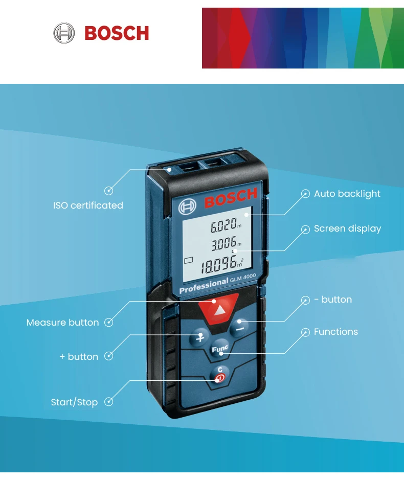 Bosch GLM400 / GLM 4000 Laser Rangefinder 40 Meters Measurement Range