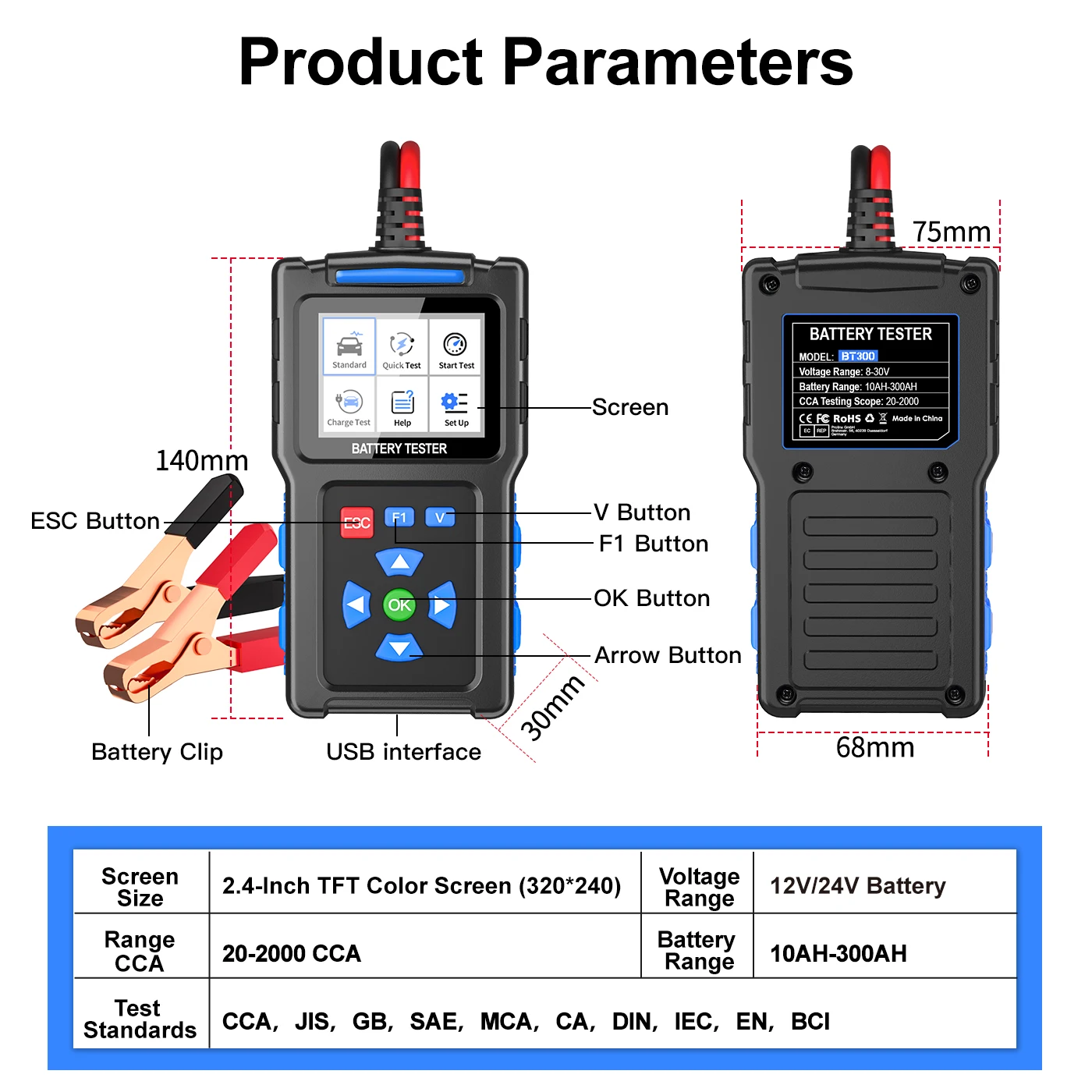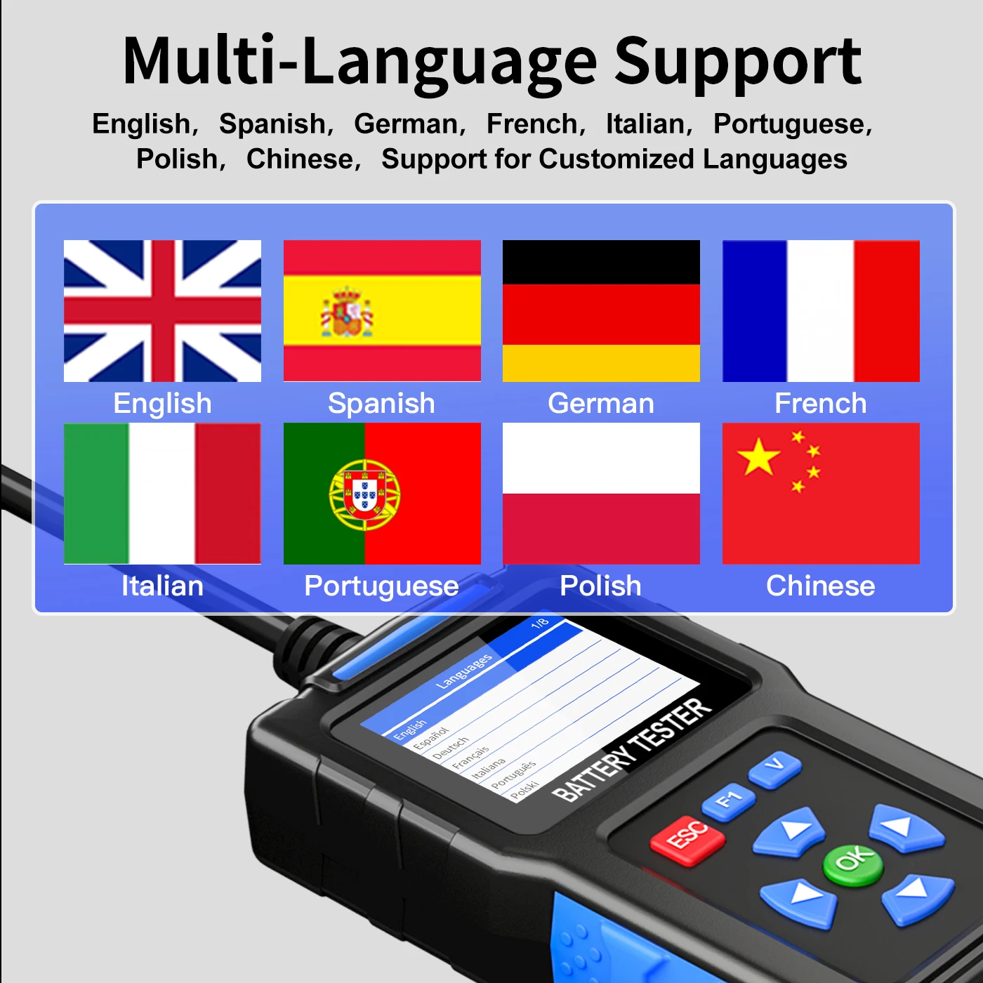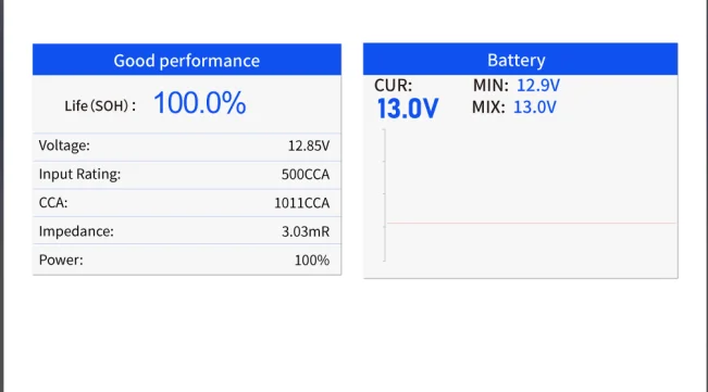 • Accurate measurement: voltage, internal resistance, CCA, battery health, and charge status