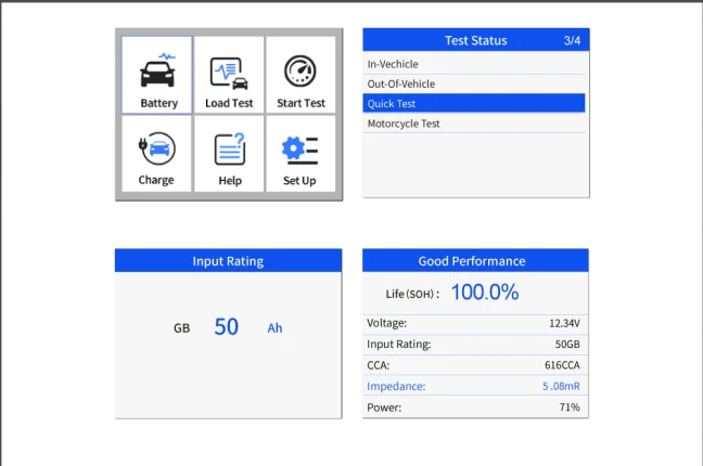 Select [Quick Test]and press Ok, according to the prompts, you can quickly test the health status of the battery by pressing Ok.