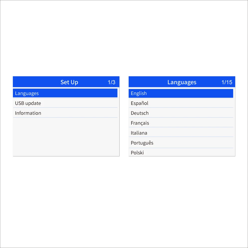 Select [Set Up] function, press OK button to enter, select [Languagelmode, select the desired language, press OK button to confrm.