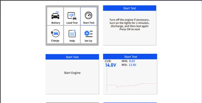 Select [Start Test] and press Ok, start the engine according to theprompts, wait for the equipment to analyze after starting, you can viewthe current battery start test results.