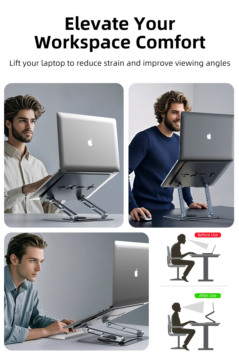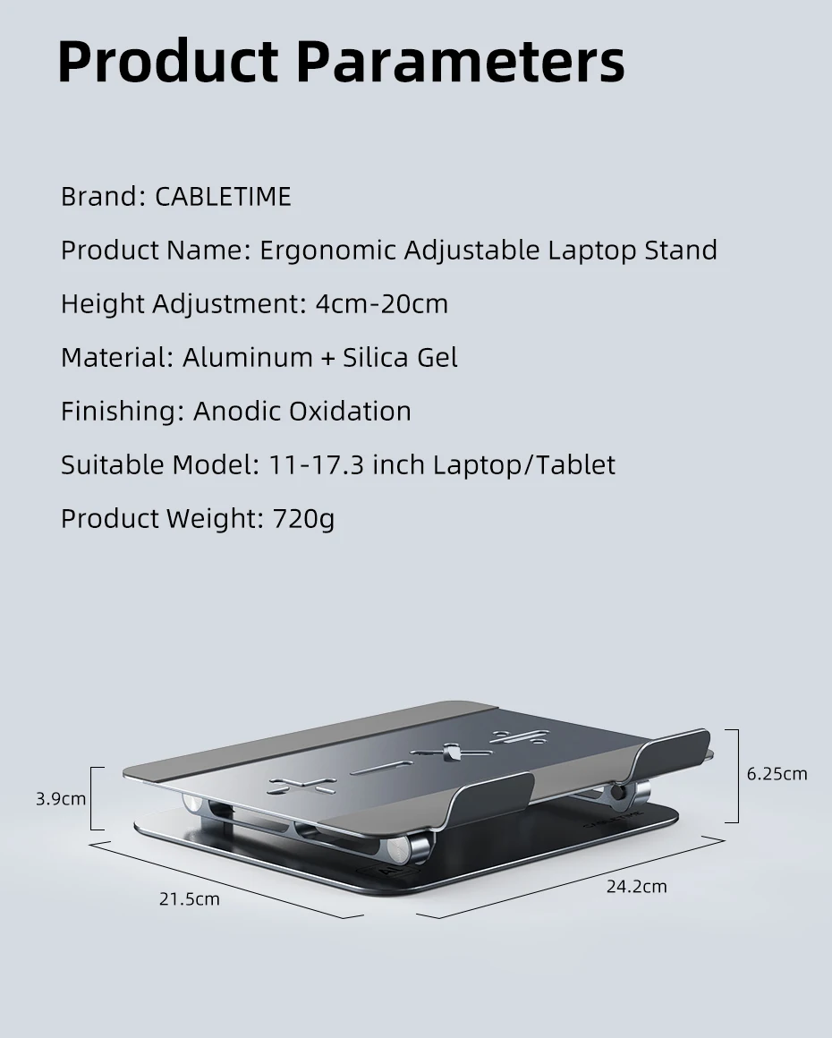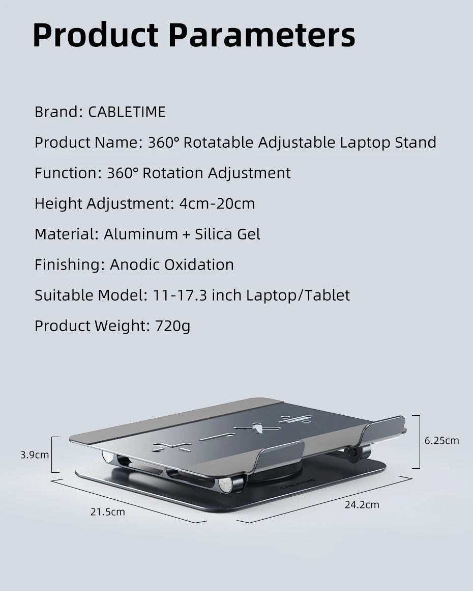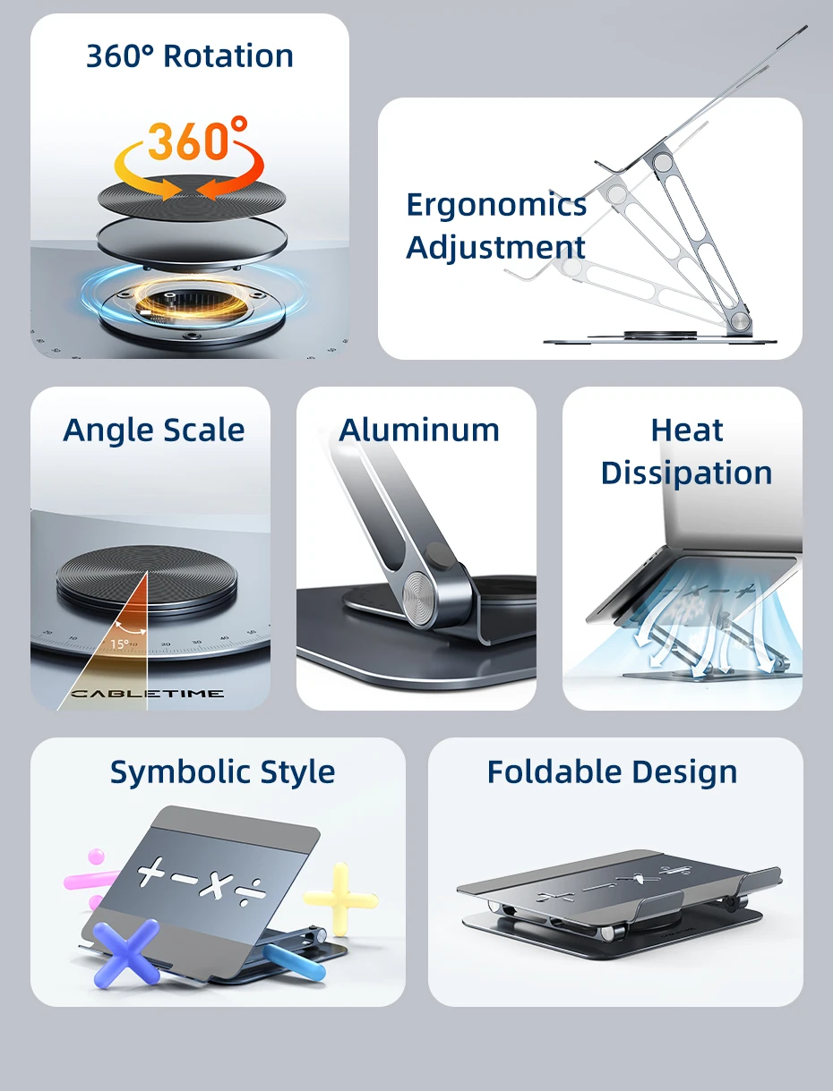 CABLETIME Laptop Stand for Macbook Air Pro 360° Rotation Foldable Aluminum Vertical ipad Stand for Dell Lenovo Gaming Laptop