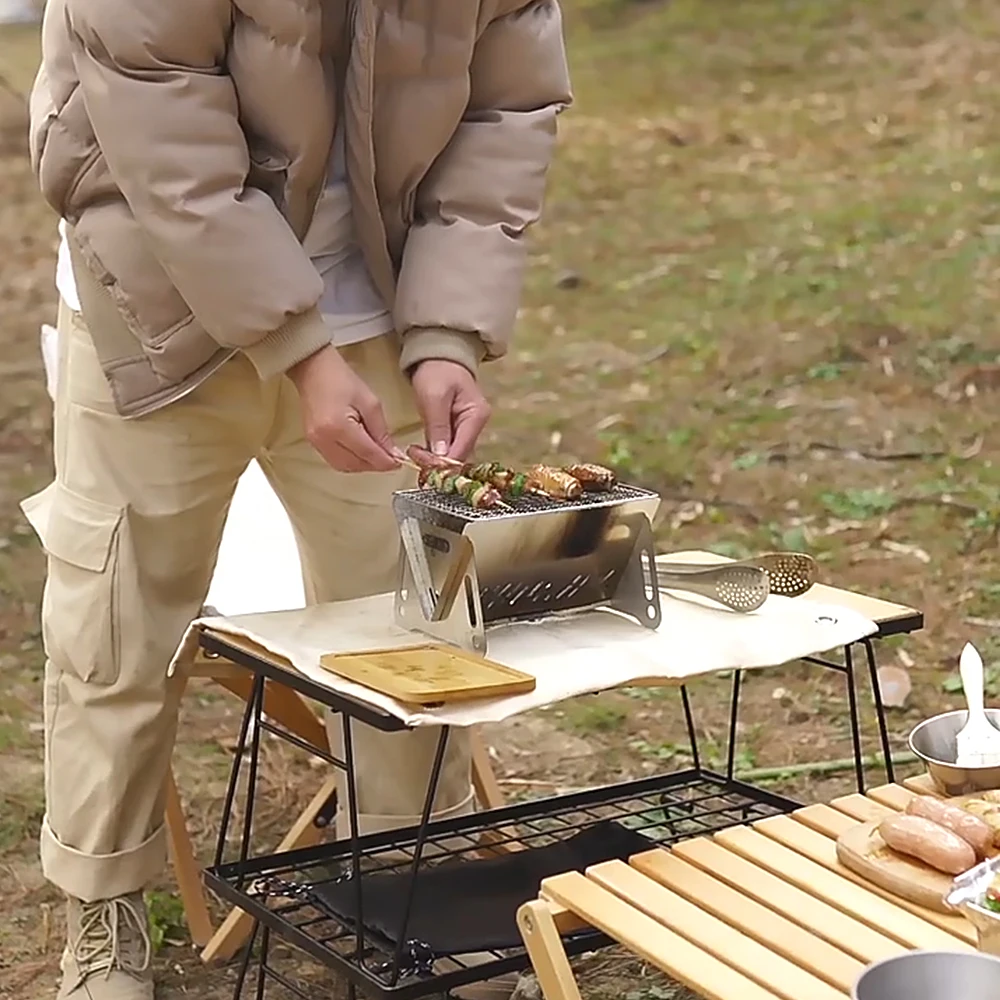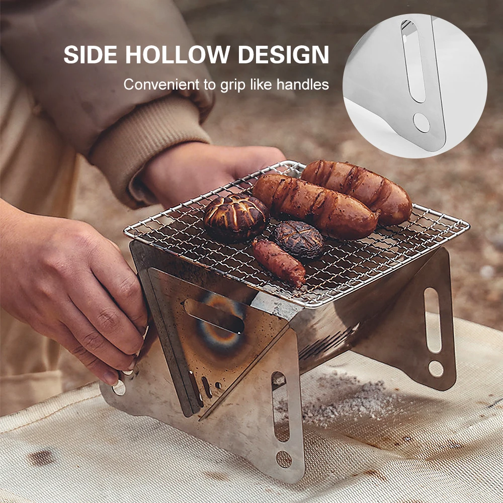 Folding stainless steel backpacking stove with a grill plate,is a great cooking tool for outdoor camping, hiking,backpacking,barbecue,etc.
