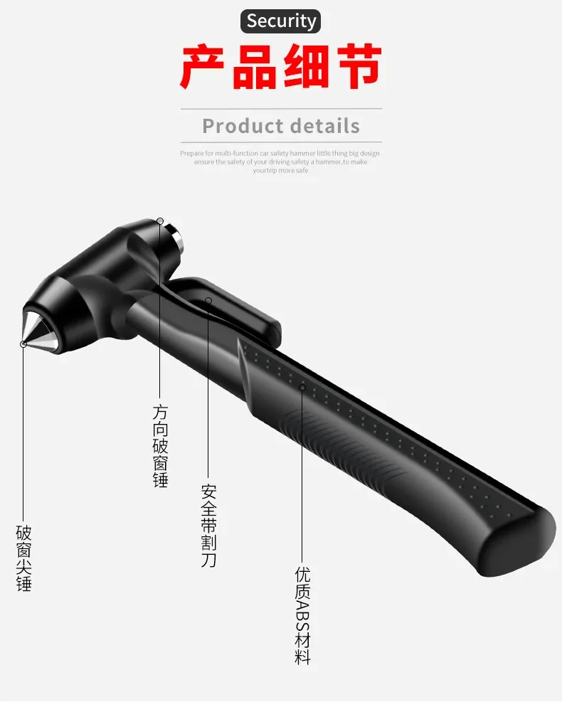 Set you free from the danger by cutting the seat belt with razor-sharp Carbon Steel hammer