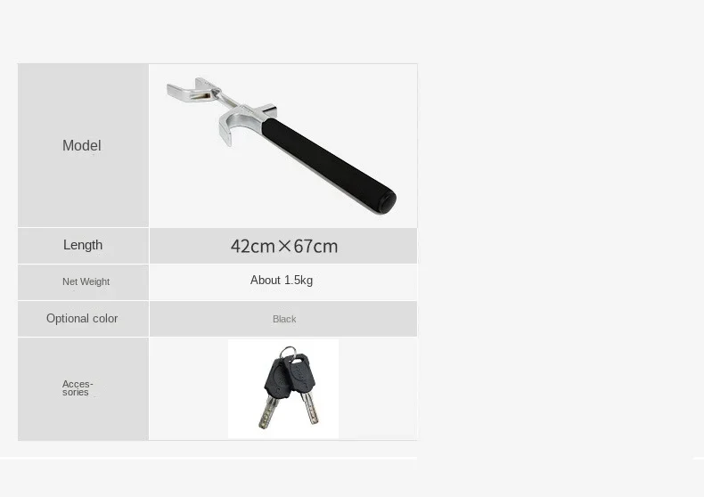 All-round security: This wheel lock is made of high-quality materials and comes with 3 pre-keys, with a mutual opening rate as low as 0.03%-0.05%. Due to its durable construction, it remains usable for 48 hours after being tested with a 5% NaCl solution.