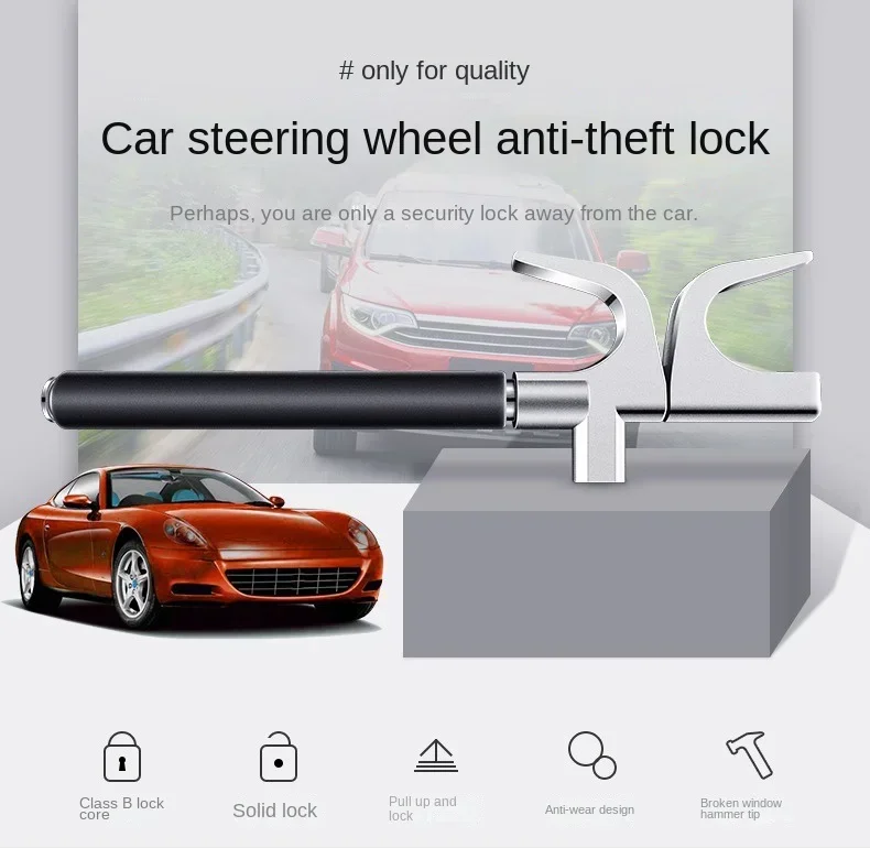 The 3-in-1 steering wheel lock can resist prying, hammer, saw and Freon attacks. Reflective strips also act as a strong theft deterrent.Easy to operate: To lock, install the hook inside the steering wheel and slide the shaft until the other end of the hook locks the steering wheel. To unlock, reverse the steps.