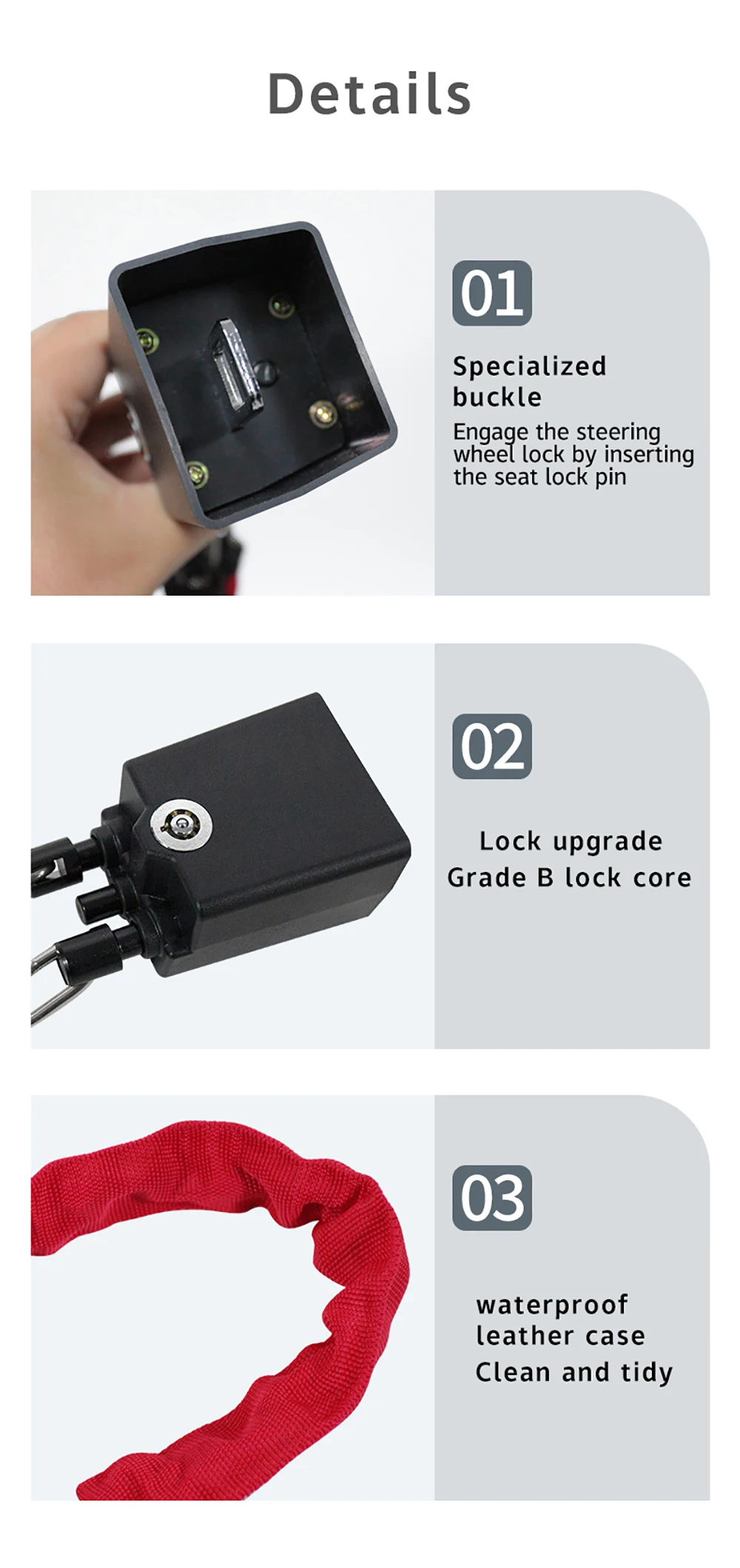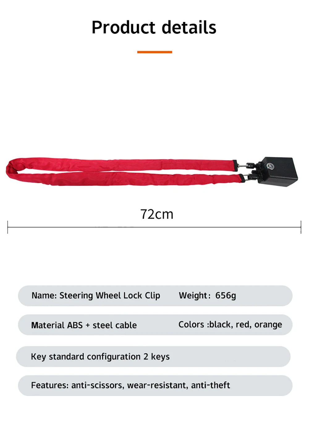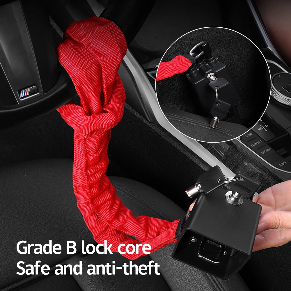2. Anti-theft seat belt locks are suitable for most cars. Up to 17″ length to lock your steering wheel and seat. It is recommended to adjust the seat position for a tight lock.
