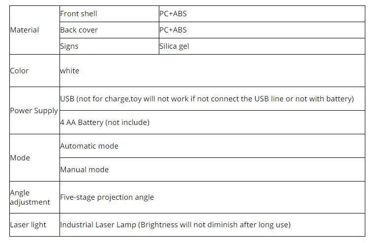 5.5 kinds of angles to adjust 5 trajectories;Projecting to wall,turn any surface in your house into a fun playground