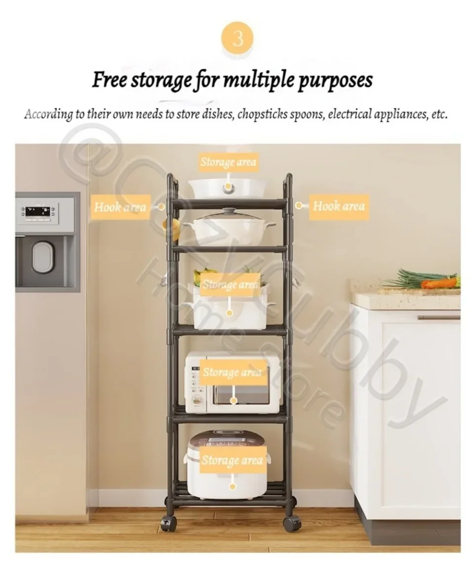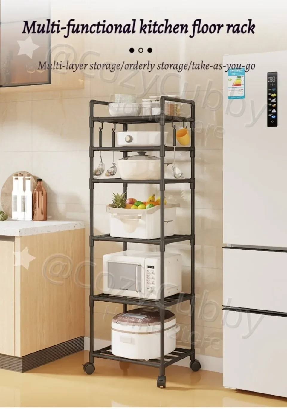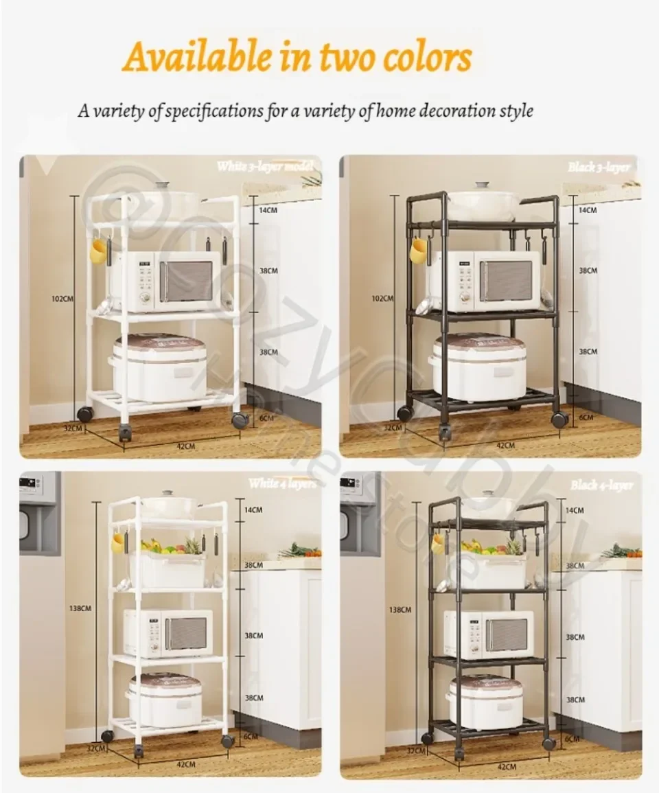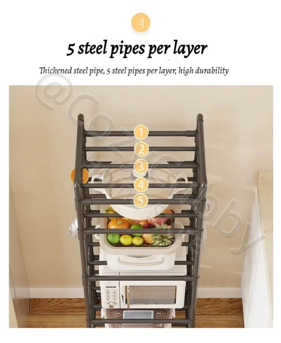 CC Storage Rack Multi Layer Floor-Standing Microwave Kitchen Trolley with Pulley for Household Kitchen Storage Accessories Shelf