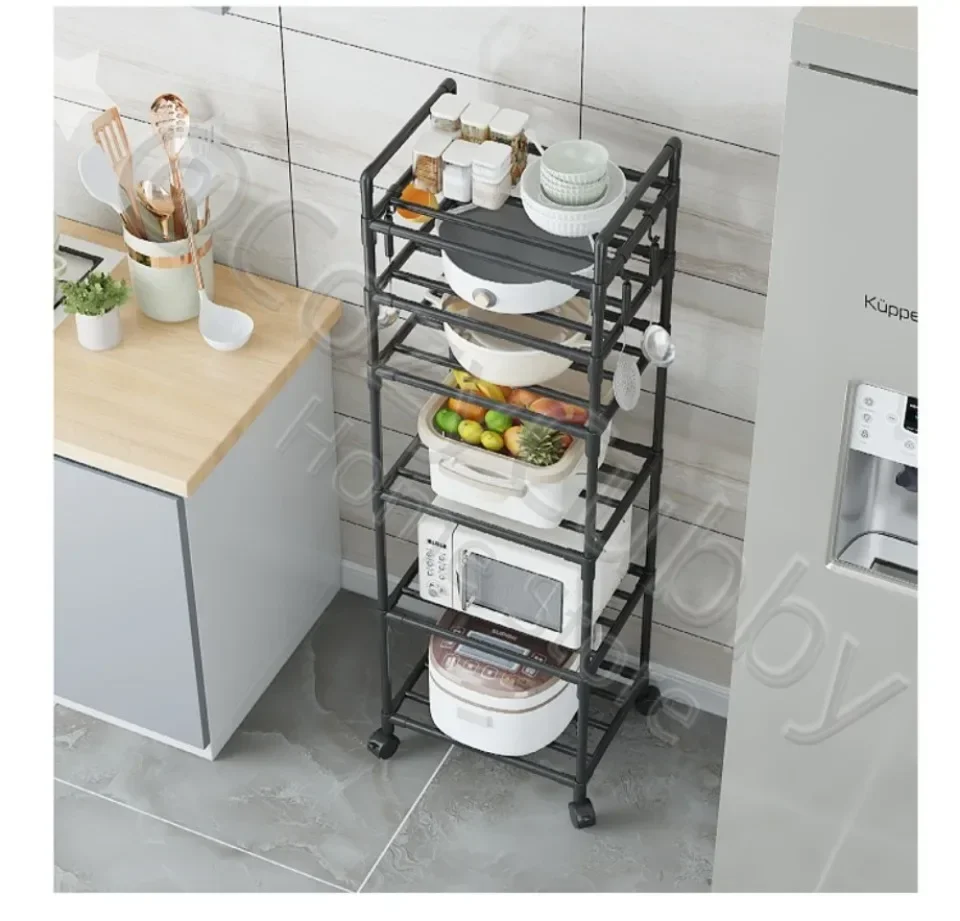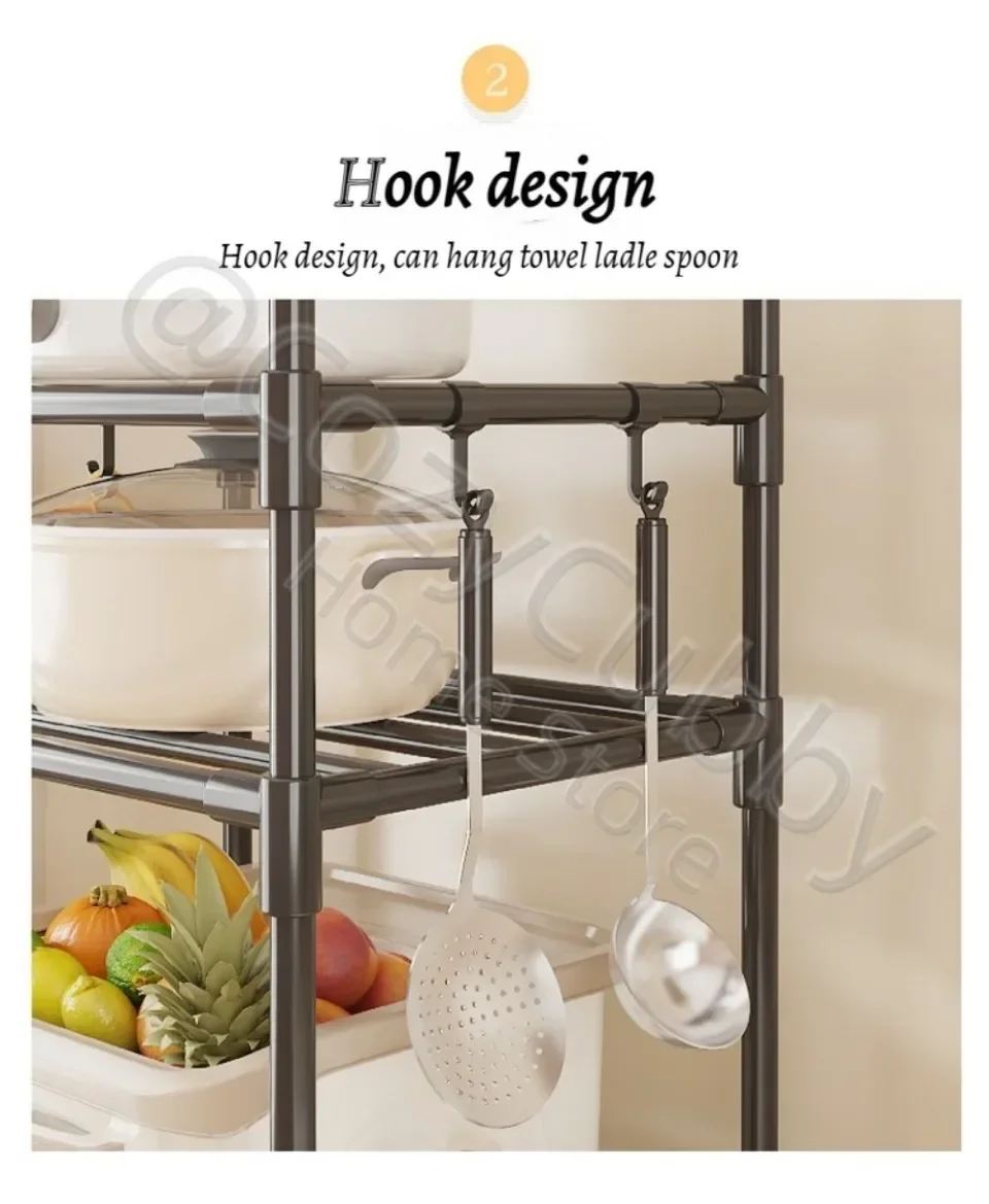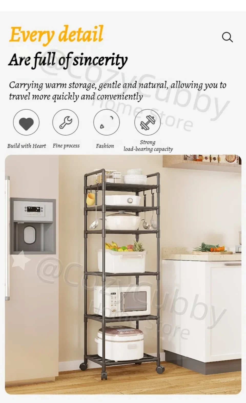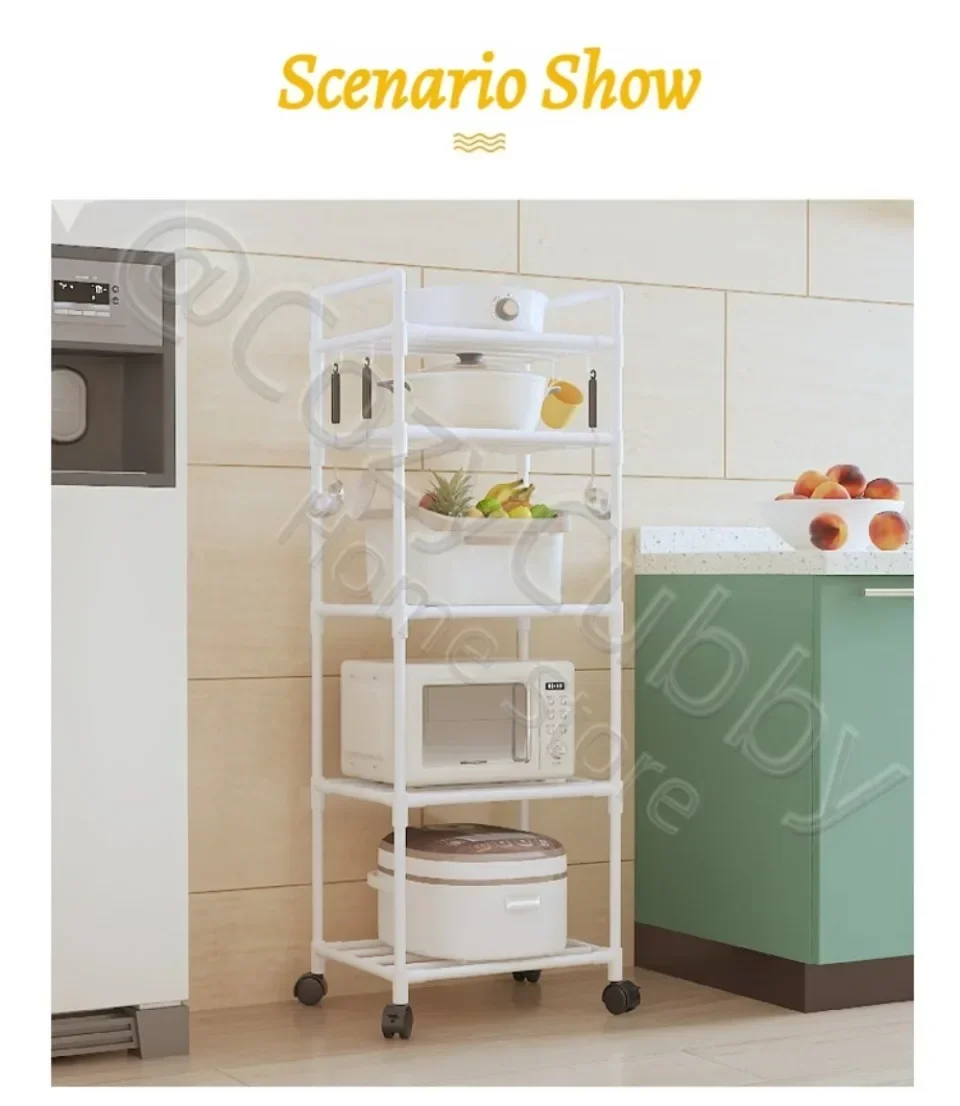 CC Storage Rack Multi Layer Floor-Standing Microwave Kitchen Trolley with Pulley for Household Kitchen Storage Accessories Shelf
