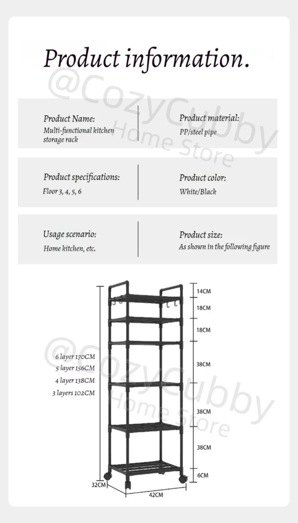 *Multifunctional design: The multifunctional design of this storage rack can be flexibly placed in any room. Whether you need extra storage space in your living room, bedroom, or office, this rack is the perfect choice.