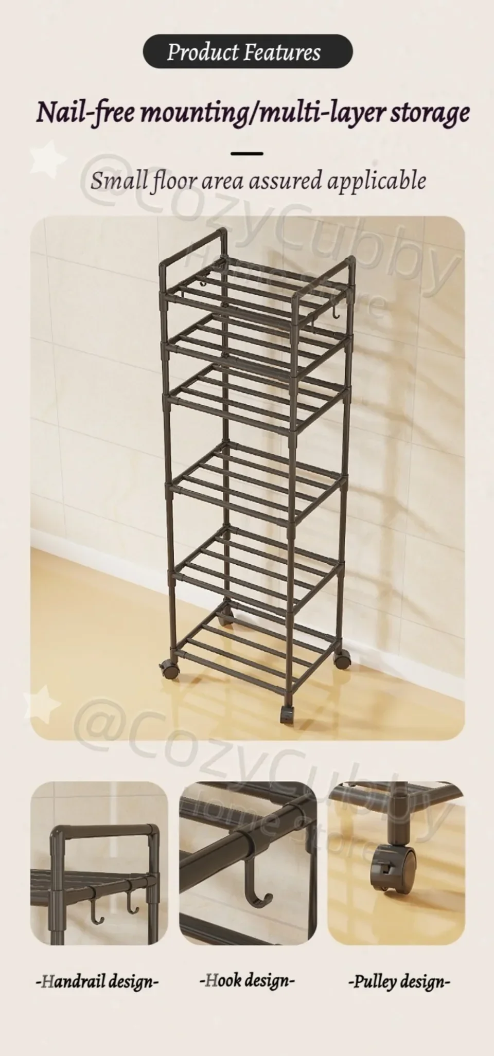 *SPACE SAVING SOLUTION: This floor-standing storage rack features a slim and compact design, perfect for tight spaces. It maximizes vertical storage space without taking up too much floor space. Say goodbye to cluttered areas and enjoy a neat and orderly living environment.